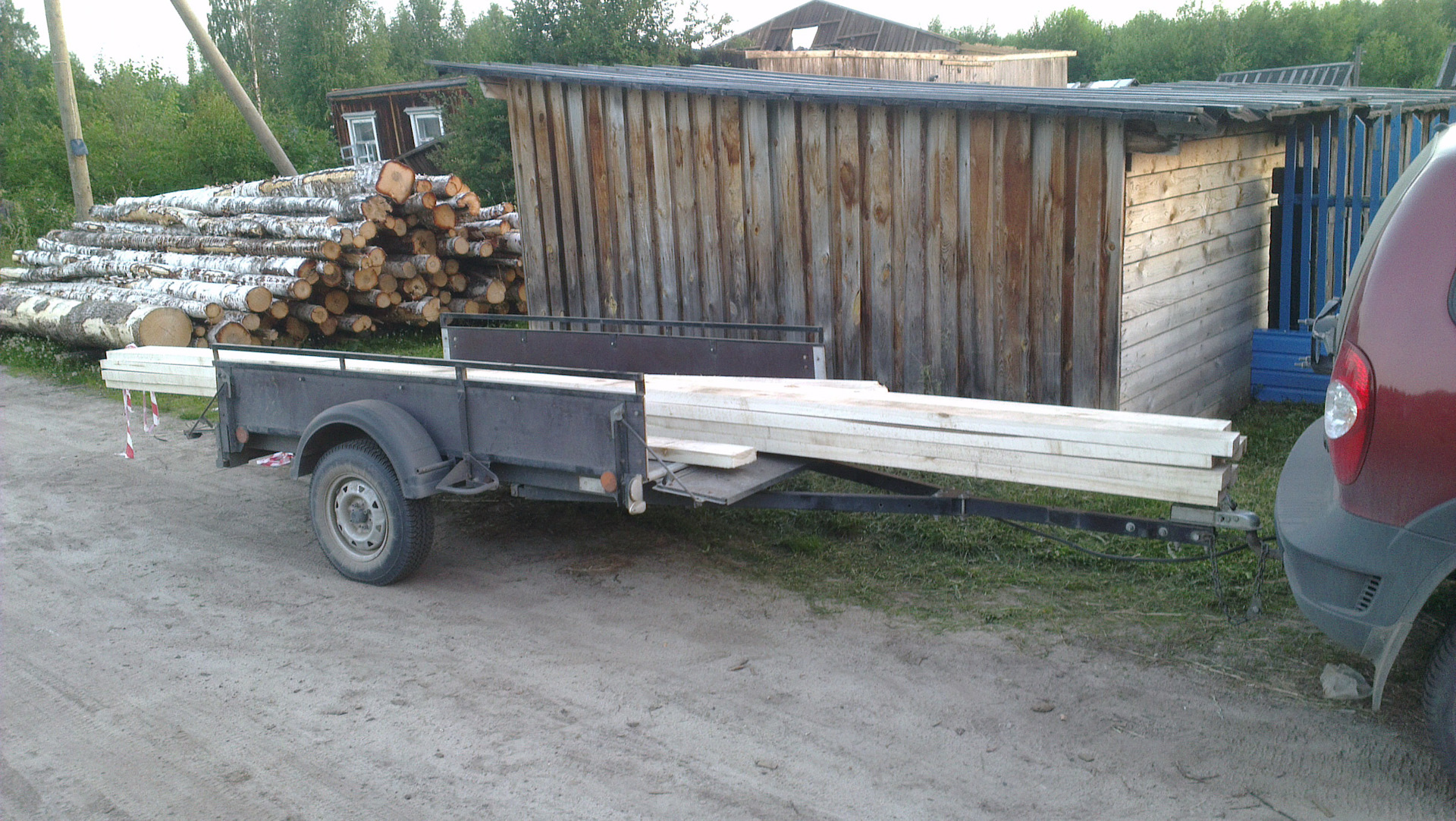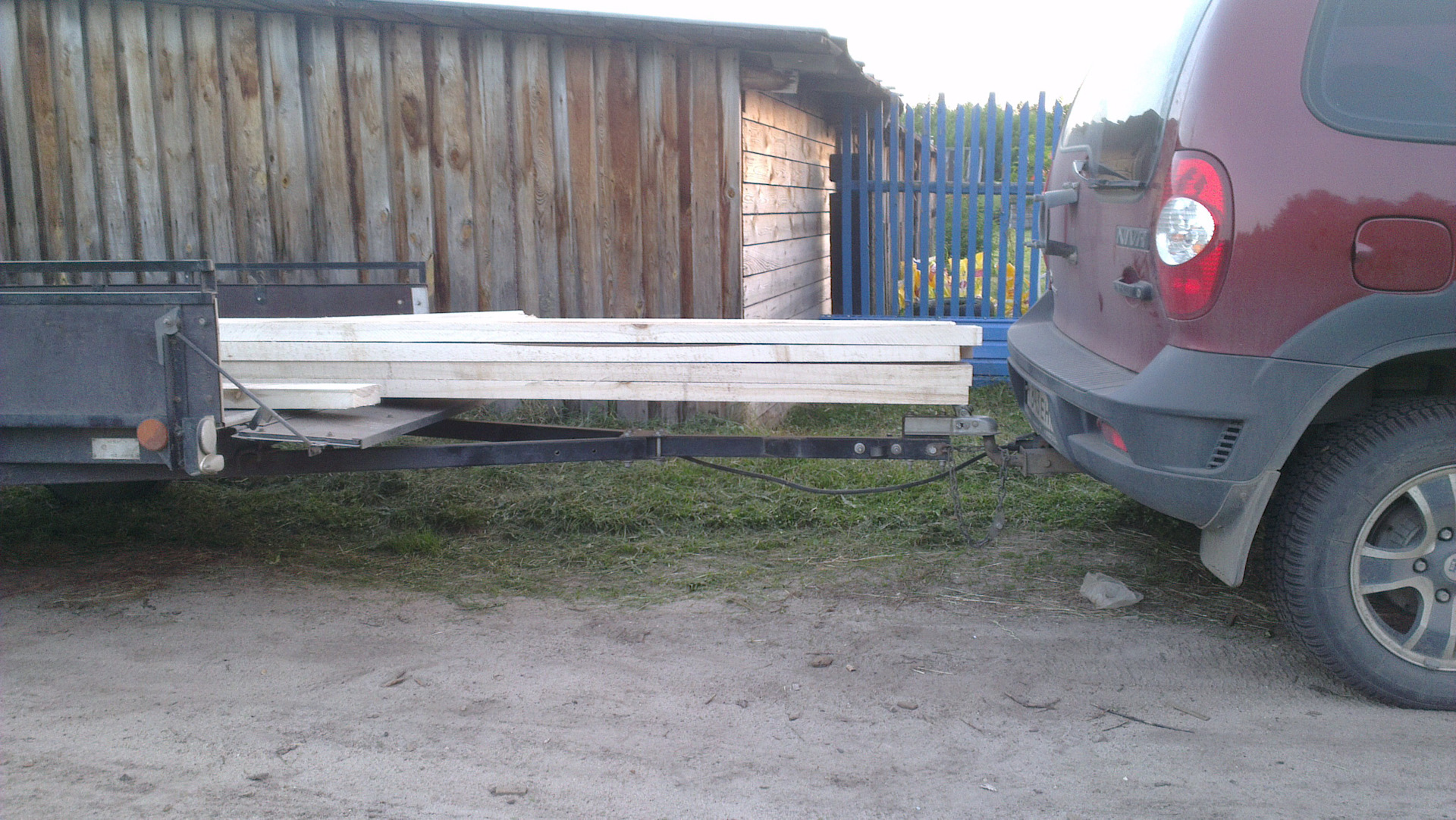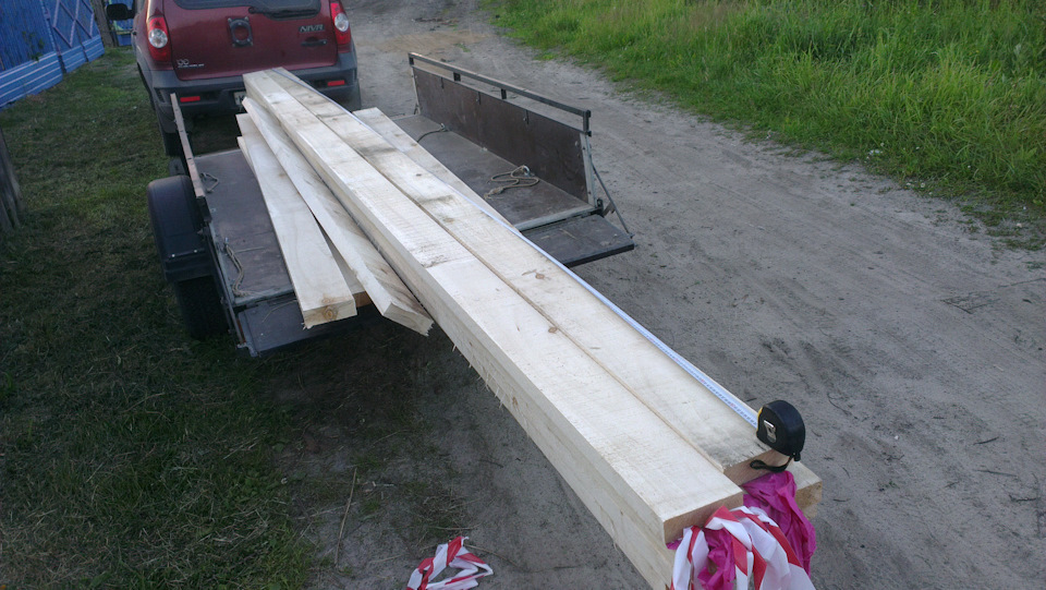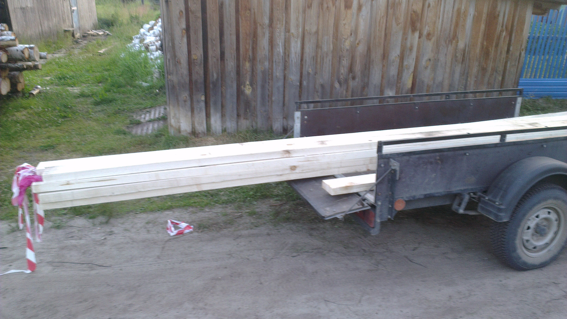 Ну а теперь по делу начитавшись ПДД, а именно пункт 23.4 и 23.5 решил померят влезет ли 6 — ти. метровая доска в мой прицеп, купил осиновых досок и погрузил в прицеп, предварительно раздвинул дышло, оказалось что все легально влезает. За габаритами торчит 1,9м. что по правилам. Две доски были 6,15 — 6,2м. пришлось их пилить они выступали за 2 метра. (Штраф на водителя от 2000 до 2500 руб. или лишение права управления ТС на срок от 4 до 6 мес.) Вешаем красную тряпку и спокойно едем домой.