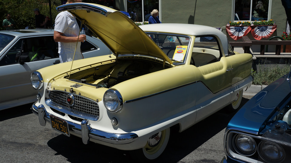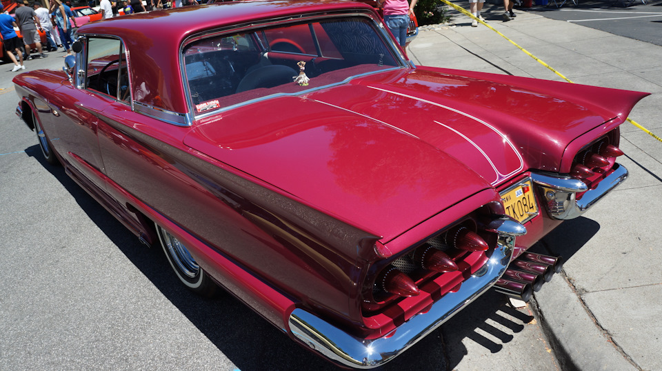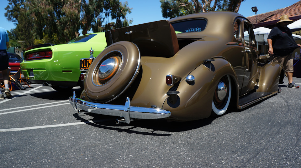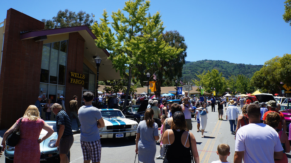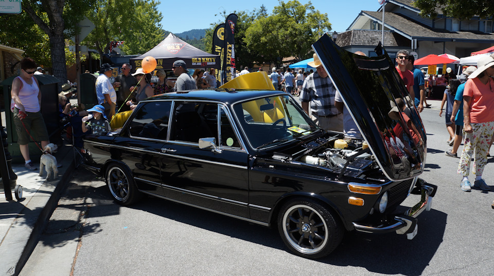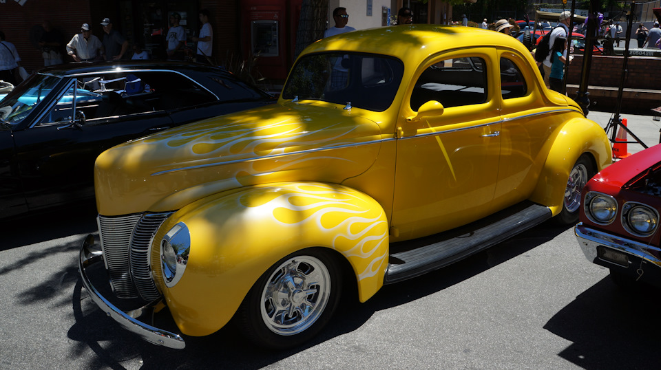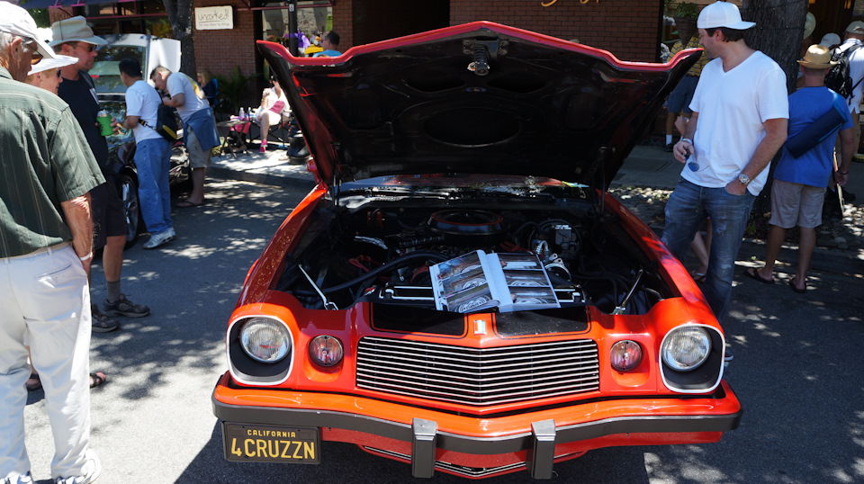 Как выглядит выставка здесь? Собираются частники на открытой парковке, а в этот раз вообще перегородили часть улицы в пригороде. Вход бесплатный. Вокруг кафе, веранды, лимонад, пиво, мороженое. Огромное количество семей с детьми и собаками, живой рок-н-ролл и конкурсы на знание истории. Сами владельцы сидят на стульчиках возле своих авто и с удовольствием рассказывают о них, если спросить. Можно заглядывать в салон, только, пожалуйста, не царапайте краску. Чтоб был понятен ценовой диапазон машин, доступных для пристального рассмотрения без ленточек и столбиков: там стоял, к примеру, Мустанг Шелби 1967 года за 200 тысяч долларов. Количество автомобилей в этот раз приближалось к 250 участникам.