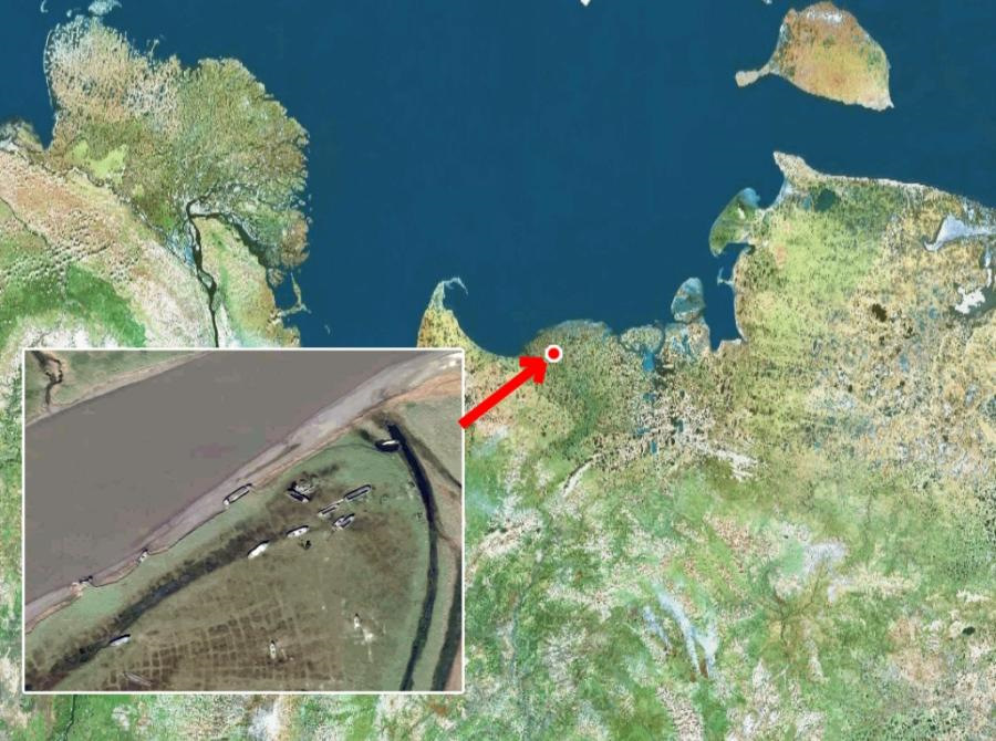 На карте (Nokia DG) даже отчетливо видно расположение этих судов в тундре (около 40 штук)