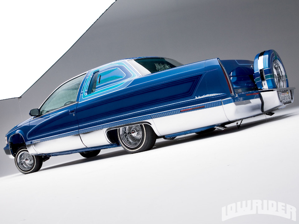 Эти знания в сочетании с его собственными идеями и перфекционизмом помогли Топо Виллафана построить его первый самостоятельный проект: двухдверное купе на базе седана Cadillac Fleetwood 1995 года. Топо говорил: “я рисовал эскизы двухдверных фуллсайзов Cadillac достаточно долго. И понял, что нужно что-то делать с мечтой — либо строить машину, либо сжечь эскизы. Хейтеры говорили, что я не справлюсь и поэтому я начал работать”. Через три месяца из ворот маленького съемного гаража в Парамаунте выехала машина, существенно повлиявшая не только на жизнь самого автора, но и на лоурайдер-сцену вообще. Из четырехдверного седана Топо превратил Fleetwood в купе, удивительно похожее на реальный заводской продукт в духе “квадратных” Fleetwood Brougham Coupe 1980-х. Но, конечно, не в том виде, в котором автомобиль мог сойти с конвейера престижной марки, а уже оснащенный всеми атрибутами лоурайдера — гидравлической подвеской, спицованными колесами, многоцветным окрасом и морем хрома…