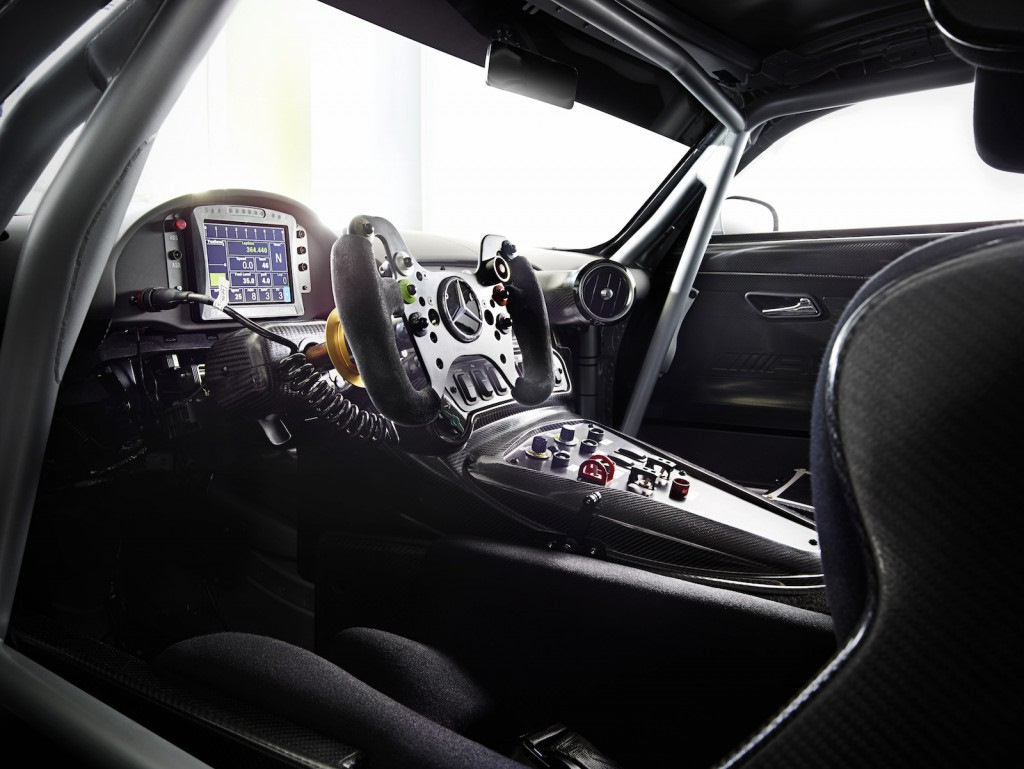 Эргономичность и функциональность доминируют в интерьере Mercedes-AMG GT3. Для того, чтобы обеспечить четкий обзор и хорошую транспортную доступность, была продумана каждая деталь, что может обеспечить преимущество в гонке: начиная с люминесцентных маркеров на элементах управления для более эффективной работы в ночное время, вплоть до центральной консоли, которая наклонена в сторону водителя.