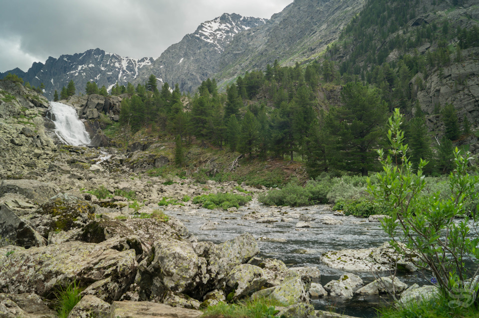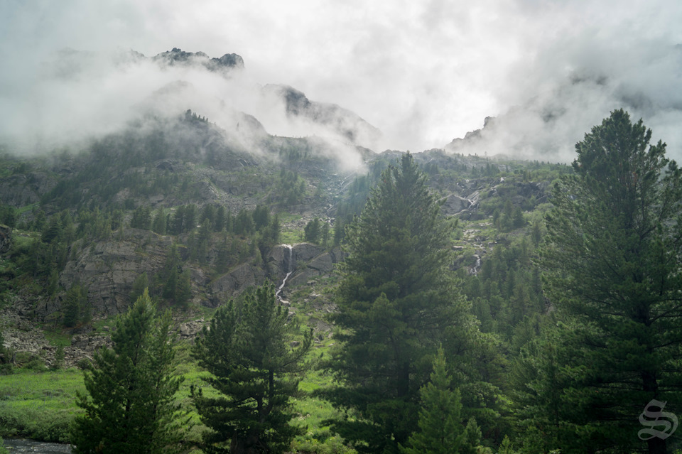 Исток р.Куйгук, вот под этим водопадом нам и пришлось зависнуть на 4,5 дня, т.к погода в нужный день нас на перевал не пустила