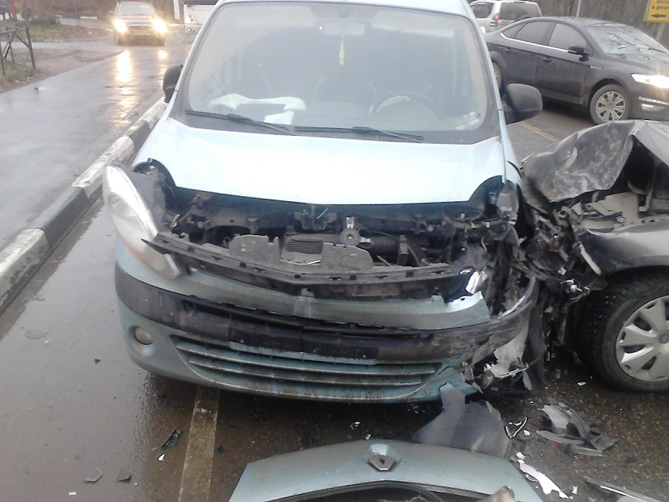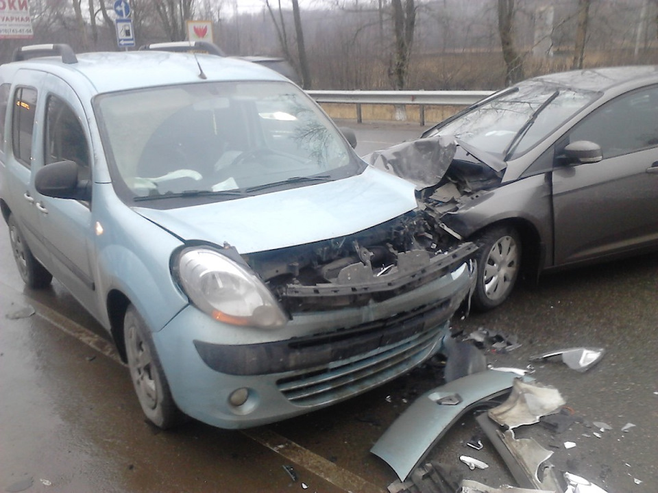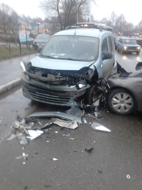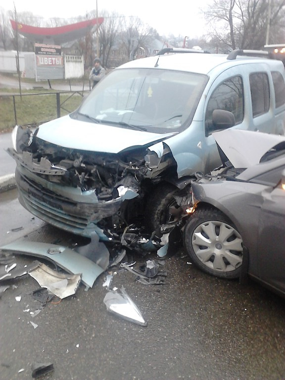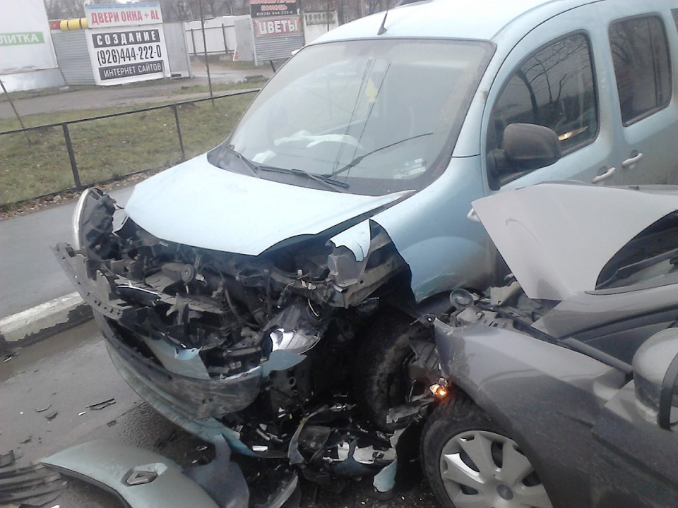 А если точнее, то это тот день когда второй раз родился можно сказать!ну и соответственно с того дня работаю на своей машине.Всё произошло в городе Дмитров, точнее на въезде в город, 7 ноября 2014 в 11.55, ехал спокойно, двухполосная дорога, впереди я видел что стоит форд фокус на левый поворот и пропускает меня, но женщина на паджеро решила иначе, а точнее как она сказала потом, она отвлеклась на вывеску в торговом центре!и это при том что у неё в салоне сзади двое детей сидели!результат её "отвлеклась"на фото!она бьёт форд в зад, а так как он стоял на левый поворот да и ещё колёса выкрутил влево, форд вылетает на мою полосу ну потом секунда и всё, никто никуда не едет(((все остались живы слава богу!машина была служебная Рено Кангу 2013 года выпуска с пробегом 30000 км., вот такая вот история((Всем удачи на дорогах!))