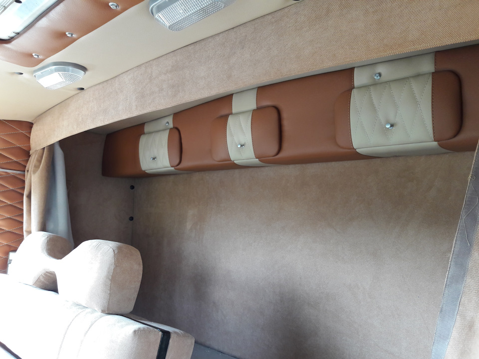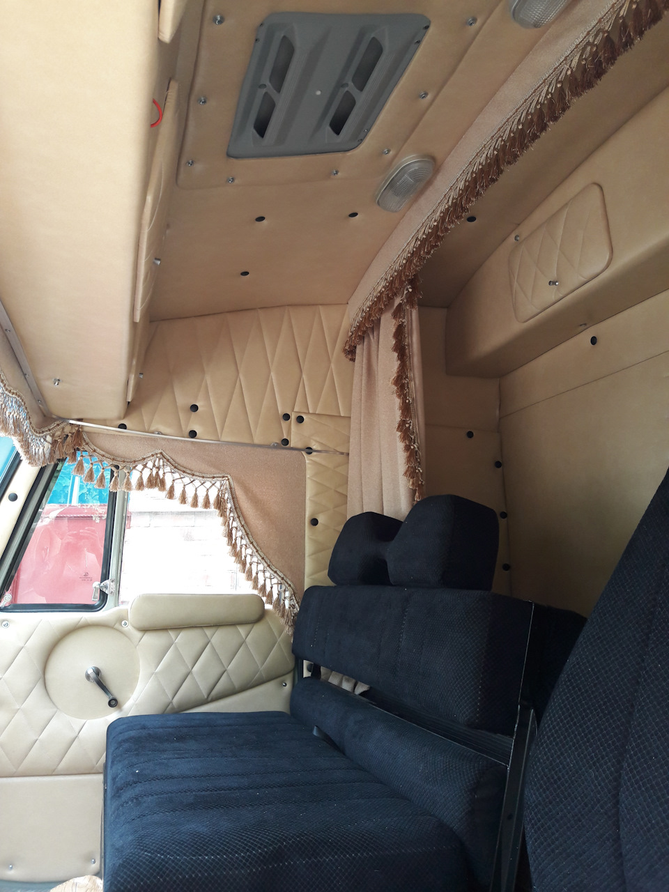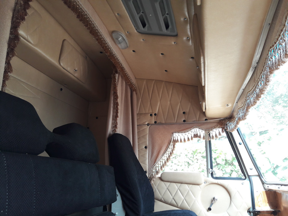 Какие кабины вылизаны, какие под выброс, какие в среднем состоянии. Но все хотят свежий салон. Дальнобойщик он в основном ездит на иномарках, большинство на стареньких. Они почему-то редко делают салоны. Они победнее. А вот основные хозяева праздника — "хомяки" ))) То бишь зерновики.