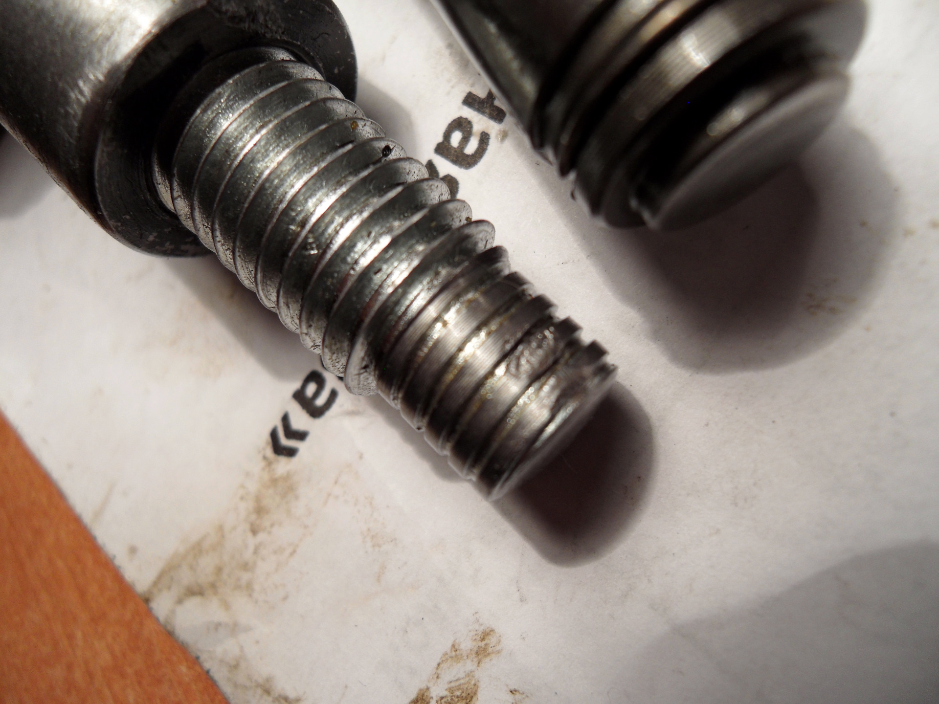 Не разобрался — сделал пробный пуск. Цепь загромыхала адово просто, и масло из под нижнего натяжителя ливануло, литра 3 за 5 секунд, вовремя заглушил, хорошо еще. Оказалось натяжитель и не сел на место, и не сработал. А почему? А вот почему! Шток ИСАИ очень тонкий, особенно на конце, у штатного гидрика шток сразу утолщается, а у ИСАИ длинный тонкий носик. И площадка рычага, куда должен упереться натяжитель, не поднимается носиком штока, а попадает под шток и заклинивает. Всё. Писец. Понял это уже сегодня, прощупывая всё тщательно там внутри пальцами. Гинекология, блин. В качестве доказательства — на фотке видны замятины на боковой поверхности штока. Больше им взяться было бы просто не откуда.