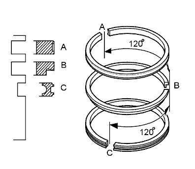 В качестве первой корректирующей меры должны быть заменены поршневые кольца. Обычно необходимо заменить только маслосъемное кольцо и смазочное кольцо. Компрессионное кольцо должно заменяться только в случае абсолютной необходимости.