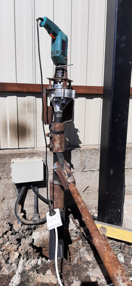 Винтовые сваи крутим дрелью через мясорубку (ручной гайковёрт РГ 56)