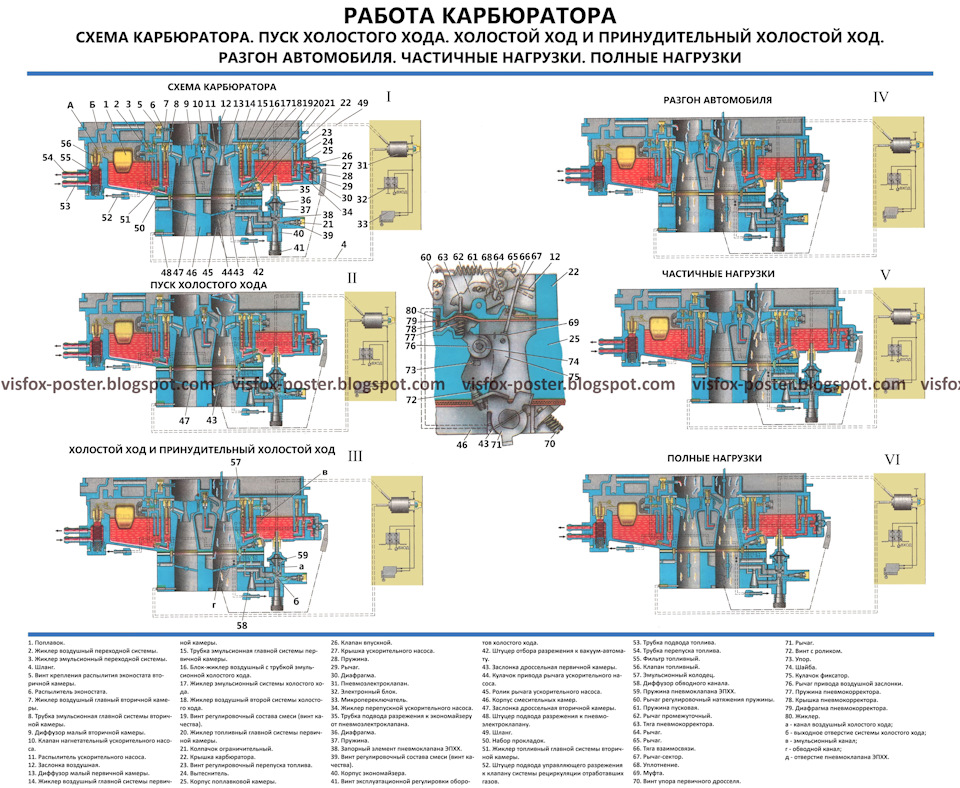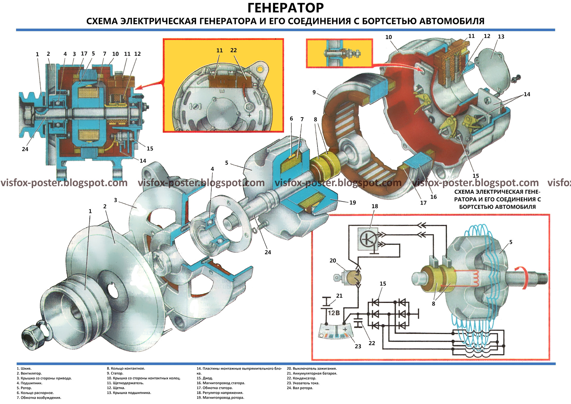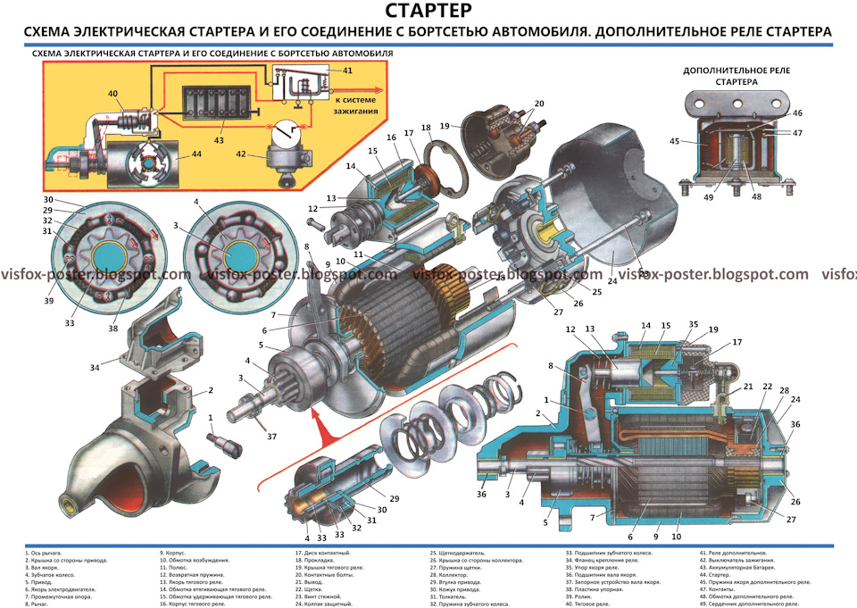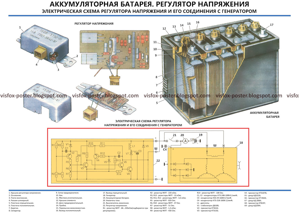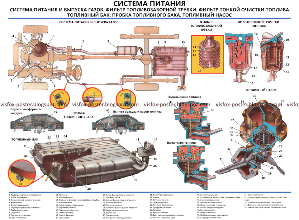 Комплект плакатов включает в себя иллюстрации, на которых изображены виды, разрезы, схемы, поясняющие устройство, взаимодействие составных частей агрегатов и узлов автомобиля.