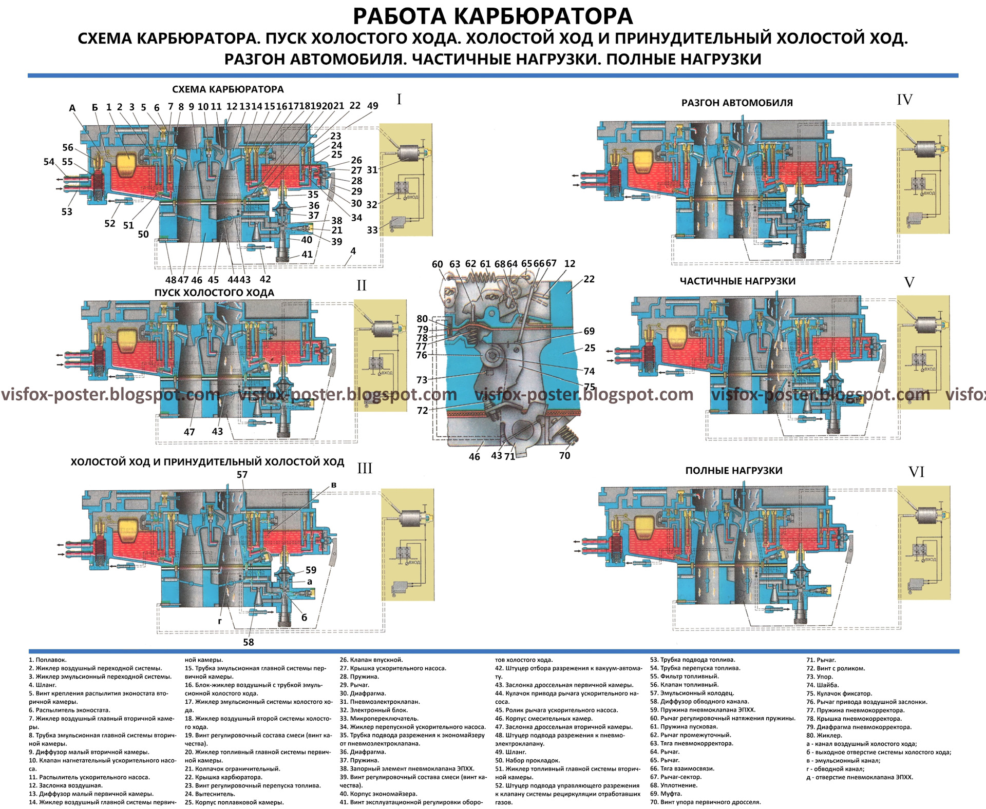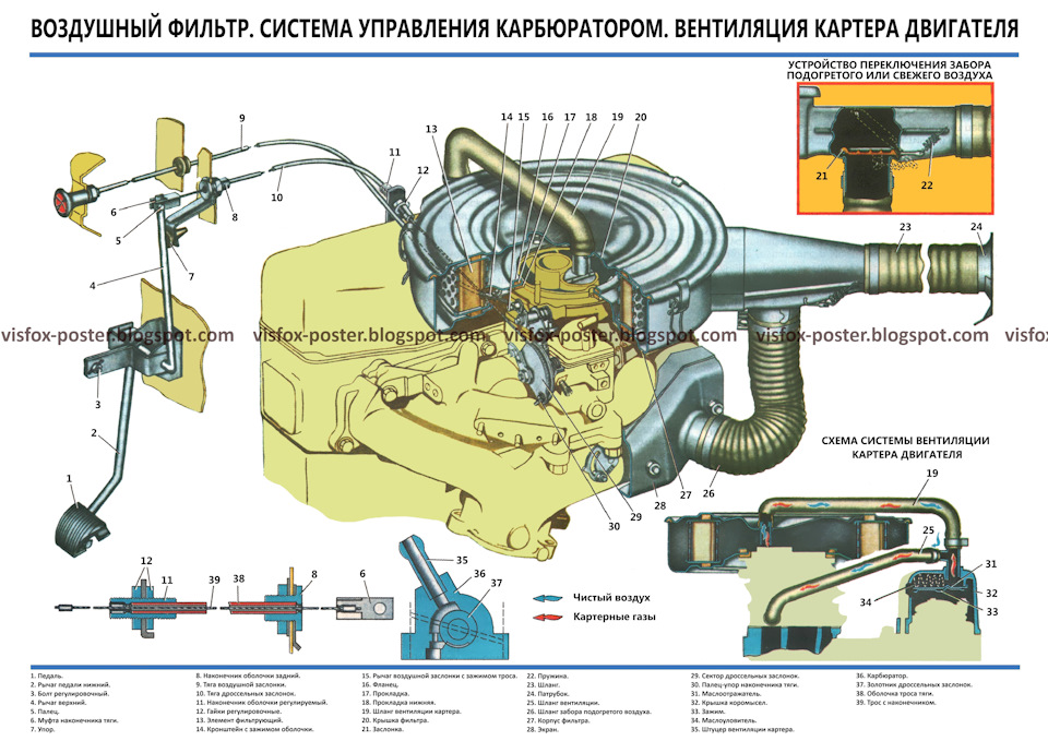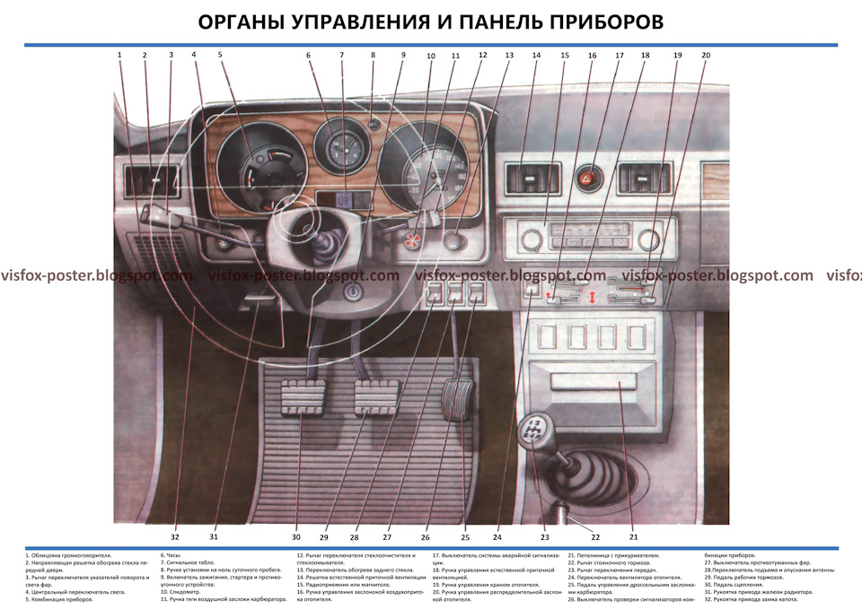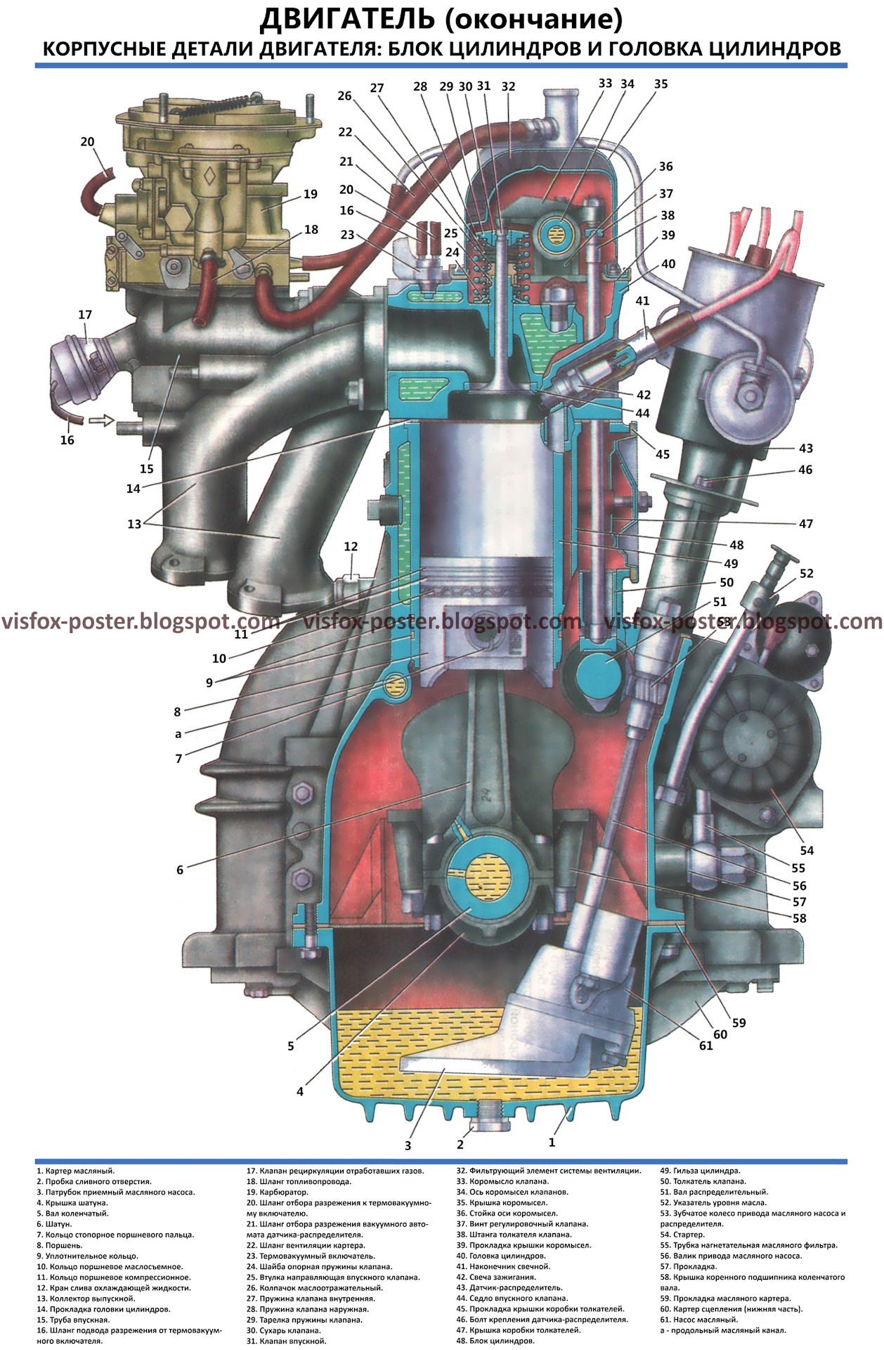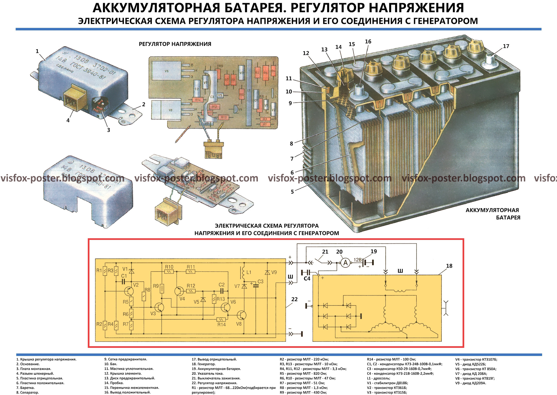 Комплект плакатов включает в себя иллюстрации, на которых изображены виды, разрезы, схемы, поясняющие устройство, взаимодействие составных частей агрегатов и узлов автомобиля.