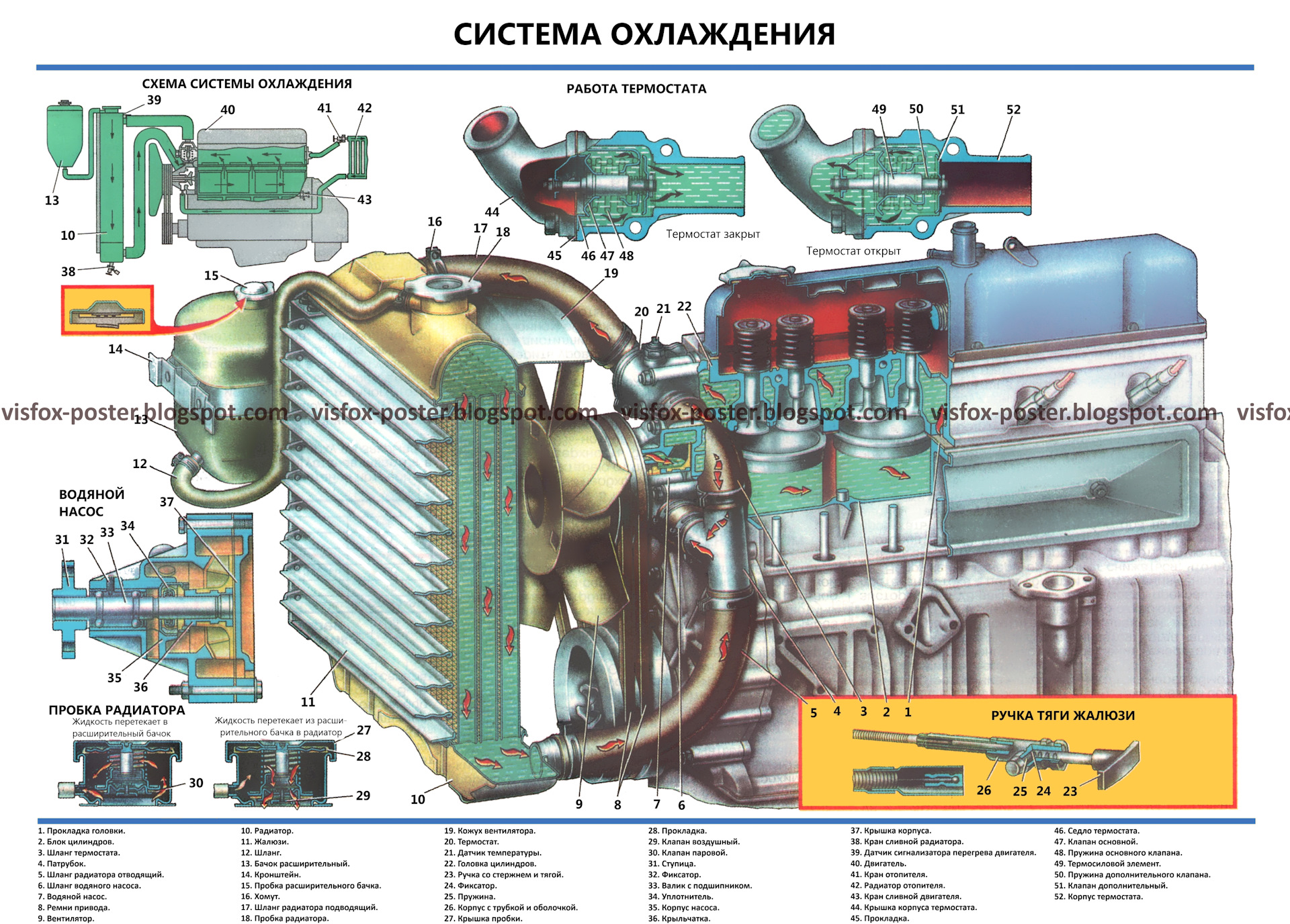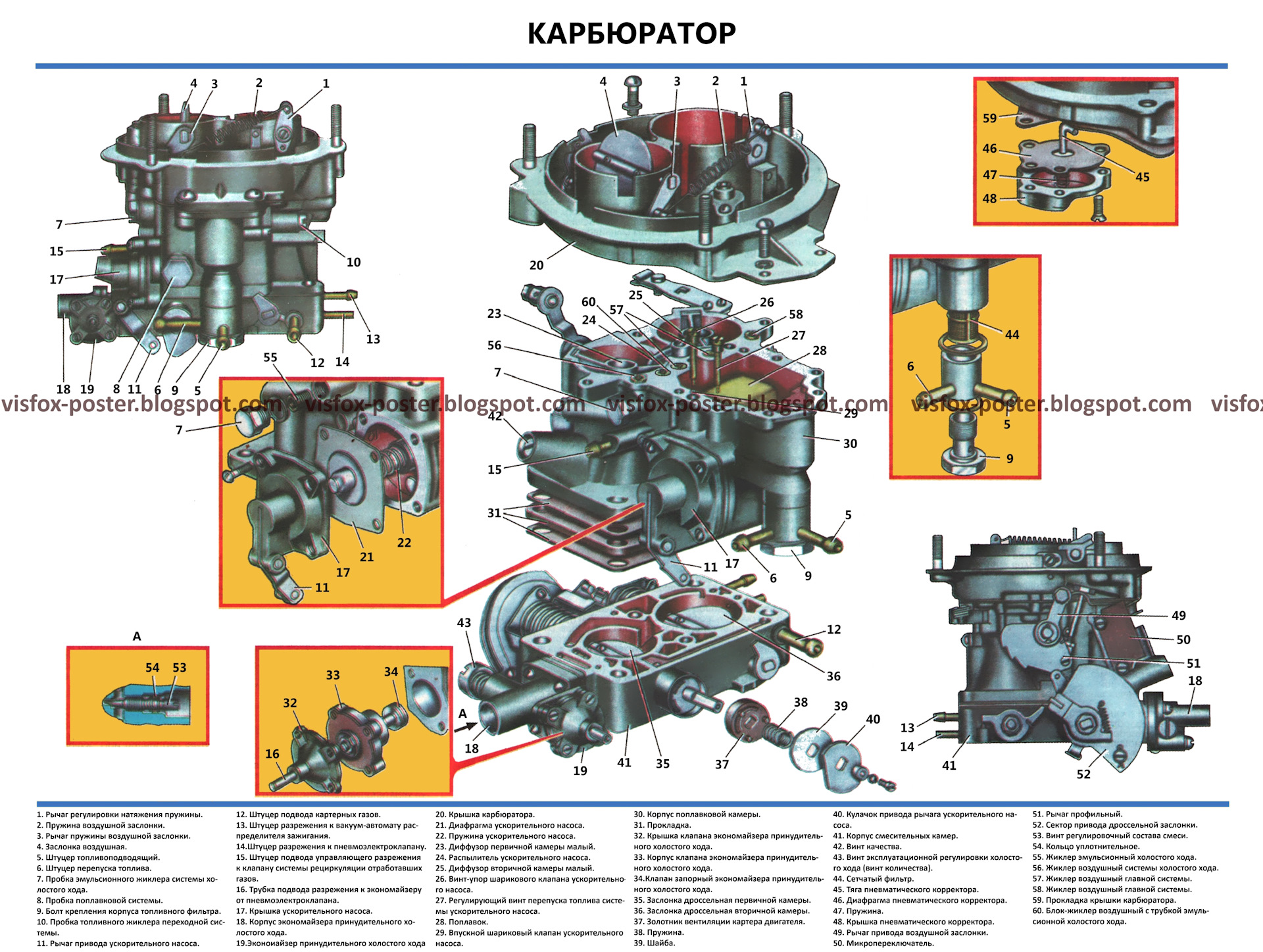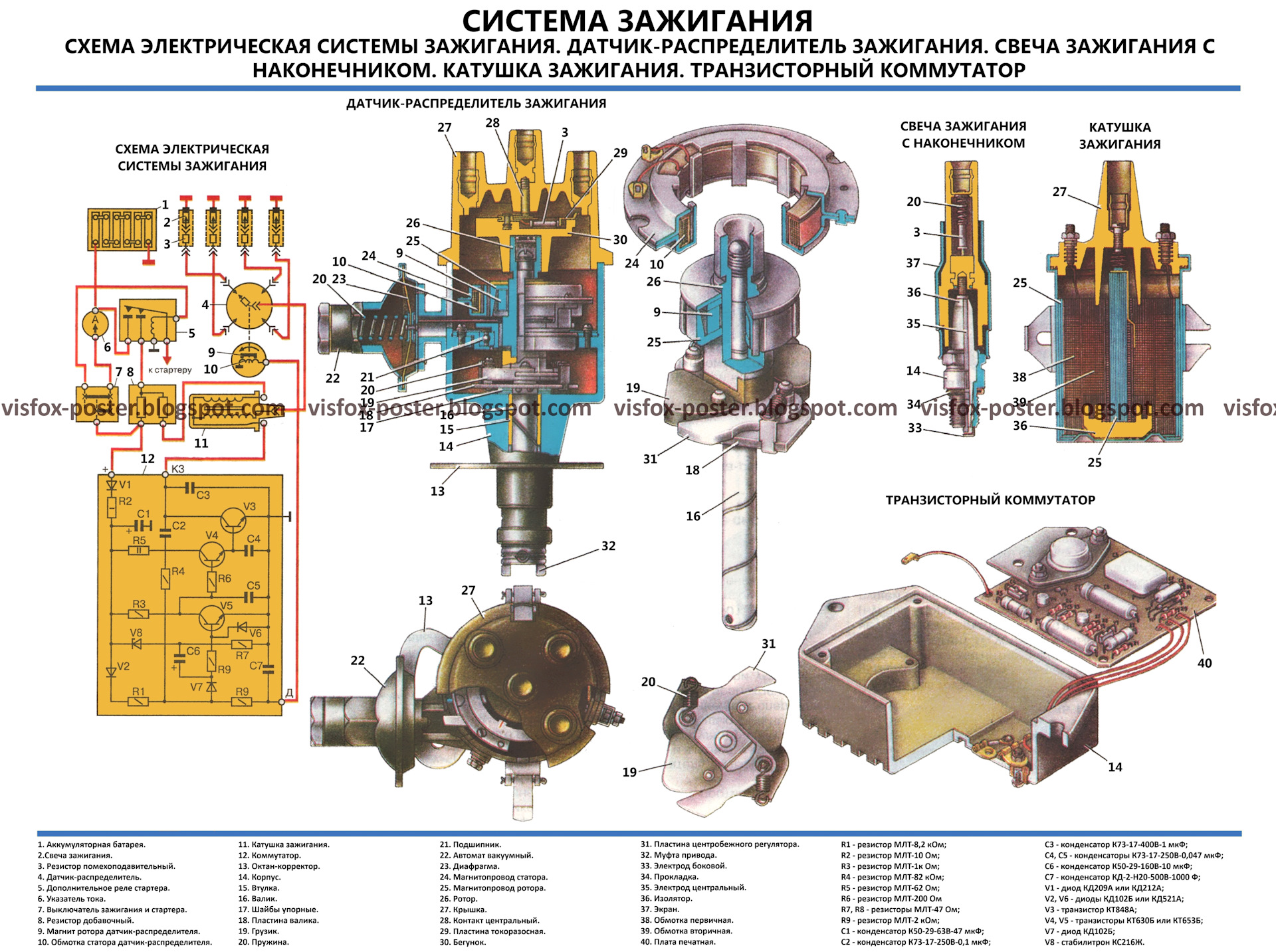 Комплект плакатов включает в себя иллюстрации, на которых изображены виды, разрезы, схемы, поясняющие устройство, взаимодействие составных частей агрегатов и узлов автомобиля.