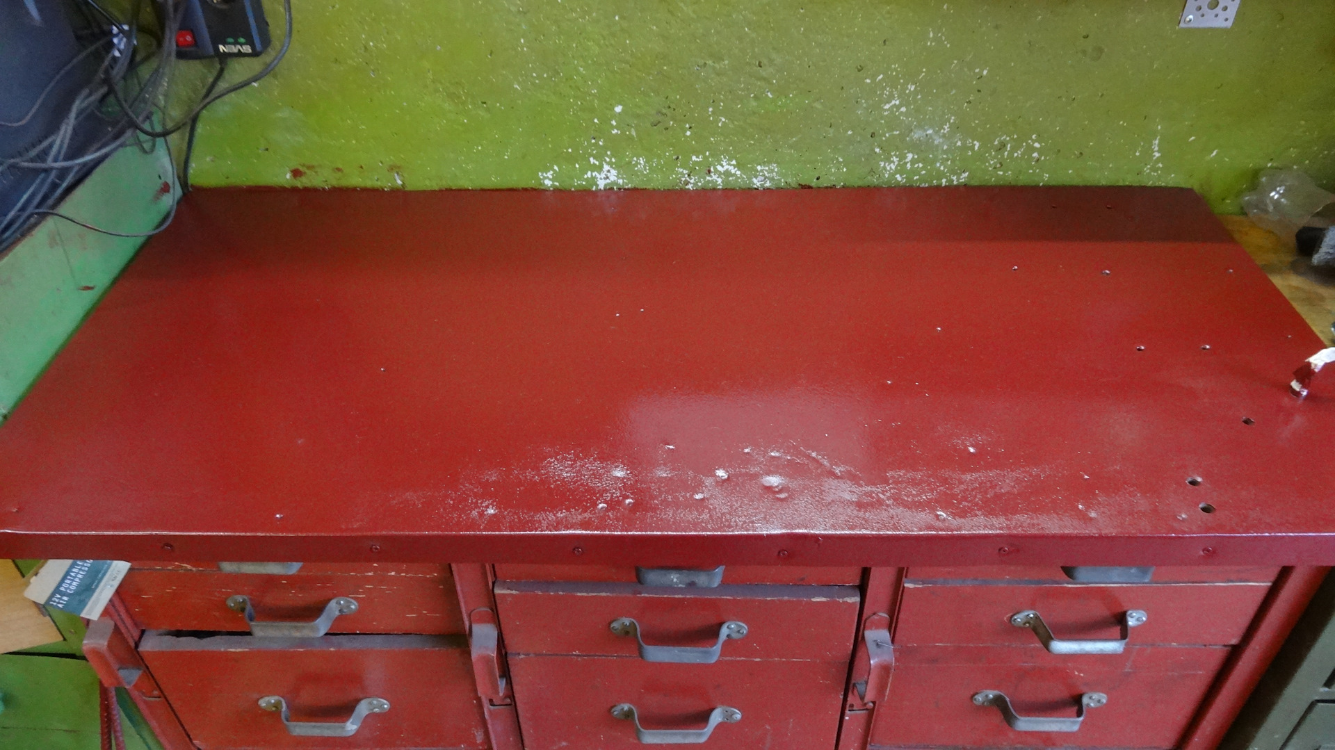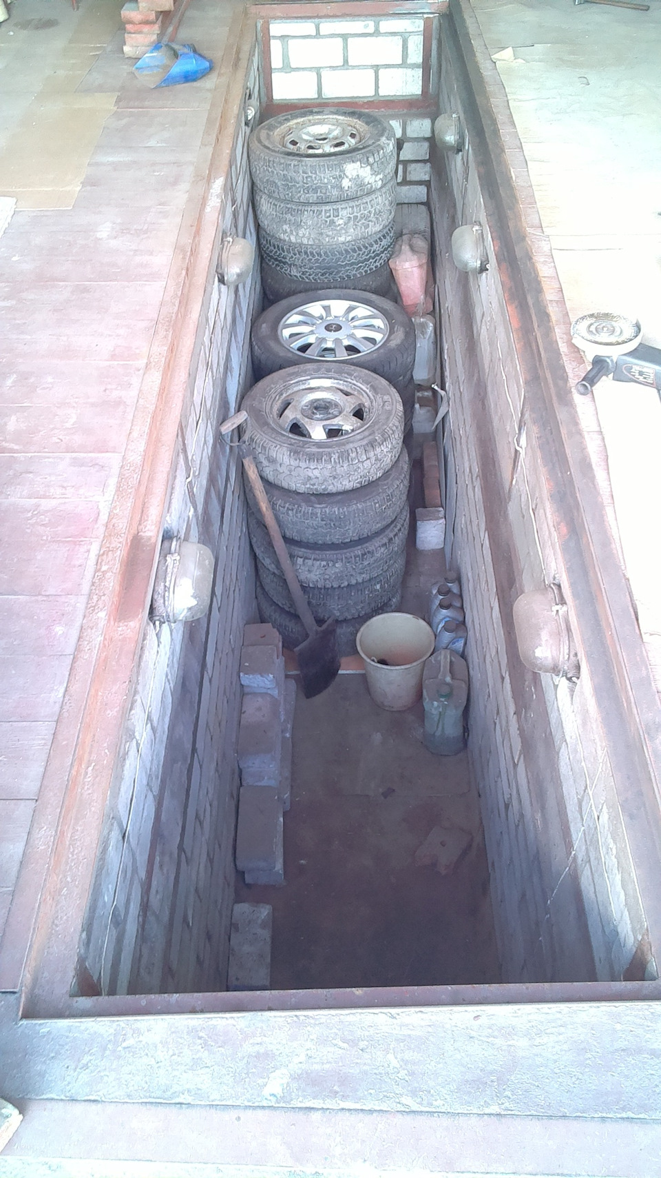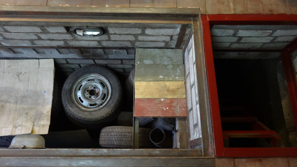 Затем всё было зачищено. Заодно решил покрасить всю смотровую яму, люк в погреб и изрядно потрёпанную столешницу верстака.