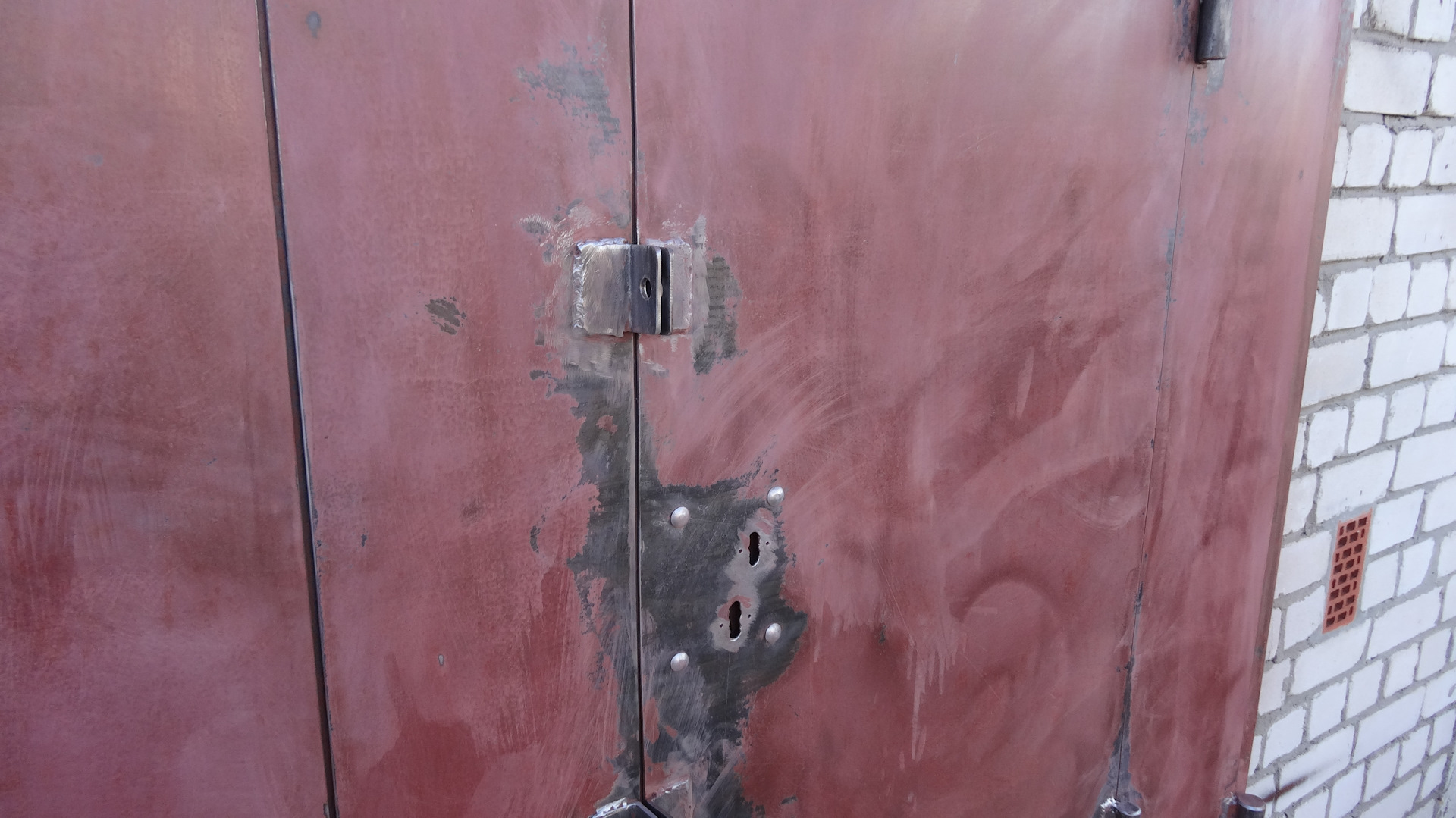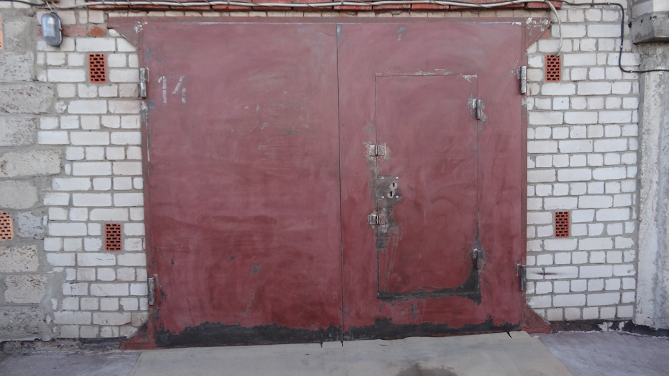 Настало время освежить ворота в гараже. Лет 7 назад они были заменены и покрашены без грунта самой дешёвой краской. Выглядело всё примерно так: