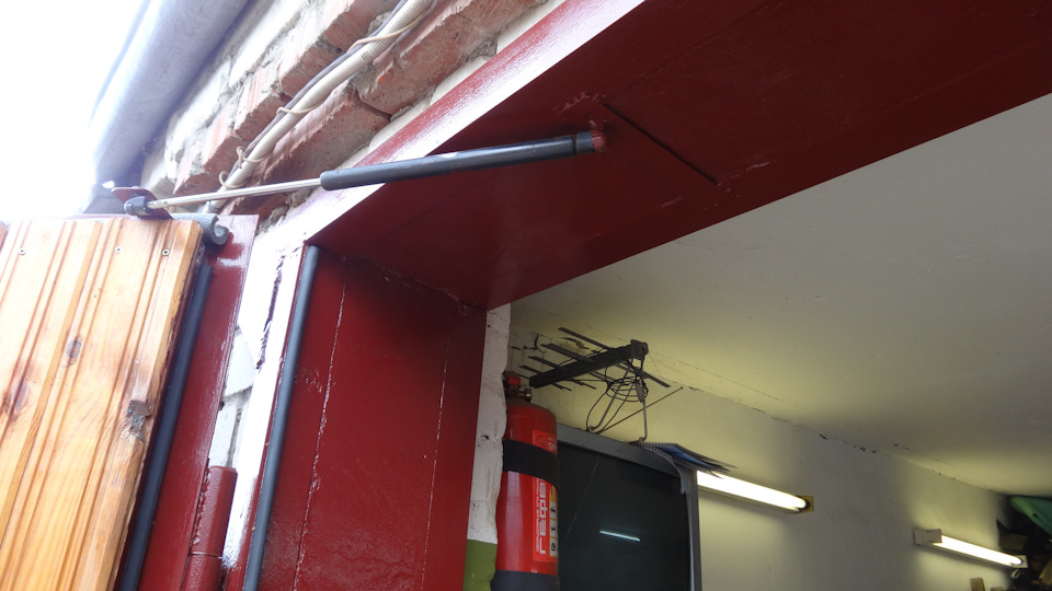 чтобы двери не закрывались. А зимой их ещё часто забивает льдом и нужно искать под снегом. Основываясь на предыдущем опыте с люком, установил упоры багажника от Москвича ( как обычно — чем они старее и легче — тем лучше, но без крайностей!).