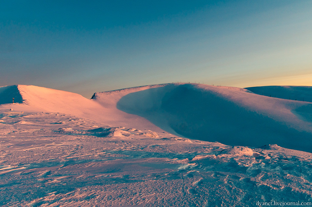 А постоянный рассвет — это ж круть! И температура удивила, думал холоднее будет. Как-то катался в -17, так пальцы на ногах приморозил, у меня по жизни перефирийное кровообращение не ахти, а плотные лыжные ботинки добавили свою лепту.