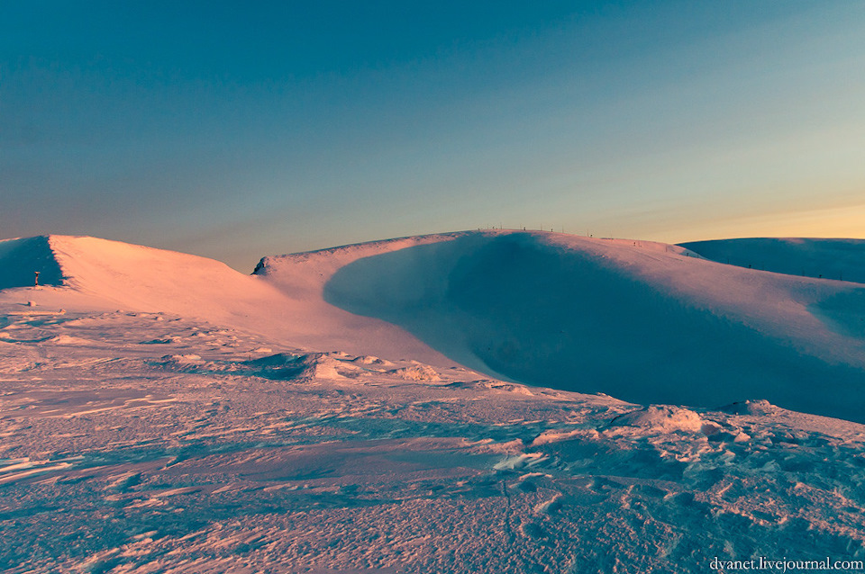 Так классно написано и сфотографировано, что уже даже начала жалеть, что на конец марта куплены билеты до Нальчика, чтобы кататься в любимом Приэльбрусье, хотя метания в сторону Кировска были ещё и раньше! Жаль, что этот пост не попался на глаза раньше — было страшноватенько ехать в новое место, посмотрев на карту склонов, показалось, что только день уйдёт на разведку всех подъёмников и трасс! Единственное, я холода боюсь)))