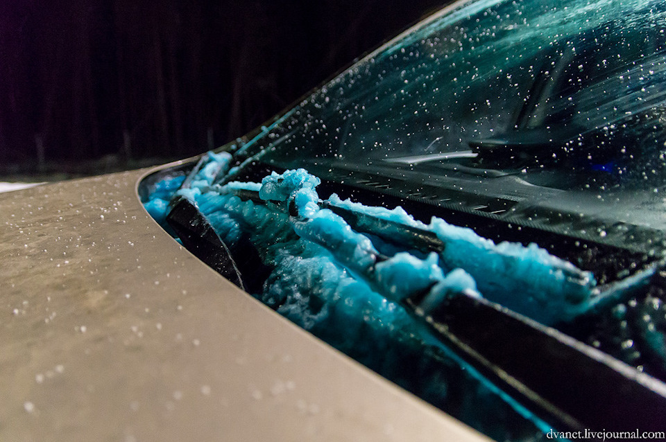3. Единственной трудностью оказалась незамерзайка на -30, которая замерзла уже при -8. Но ведь не мог же меня обмануть житель одной из солнечных республик, продавший мне эту синюю субстанцию, правда? Он ведь так убедительно и свирепо вращал глазами и гортанно кричал: «Хароший такой жыжа, мамой клянусь!»