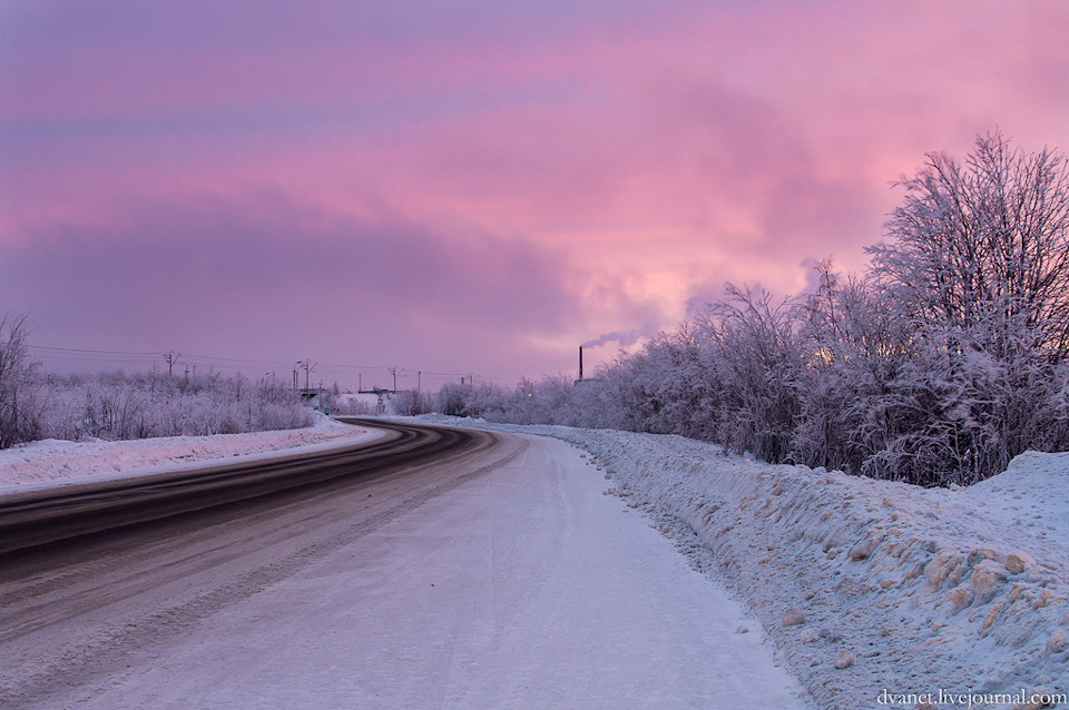 День в виде непрекращающийся рассвета с 11 до 14 примерно на начало января. И там не так уж и холодно в это время. -20, -25 максимум, правда дуть может