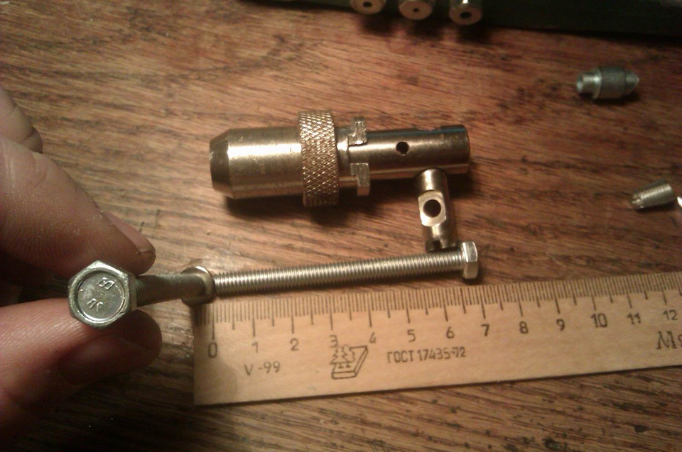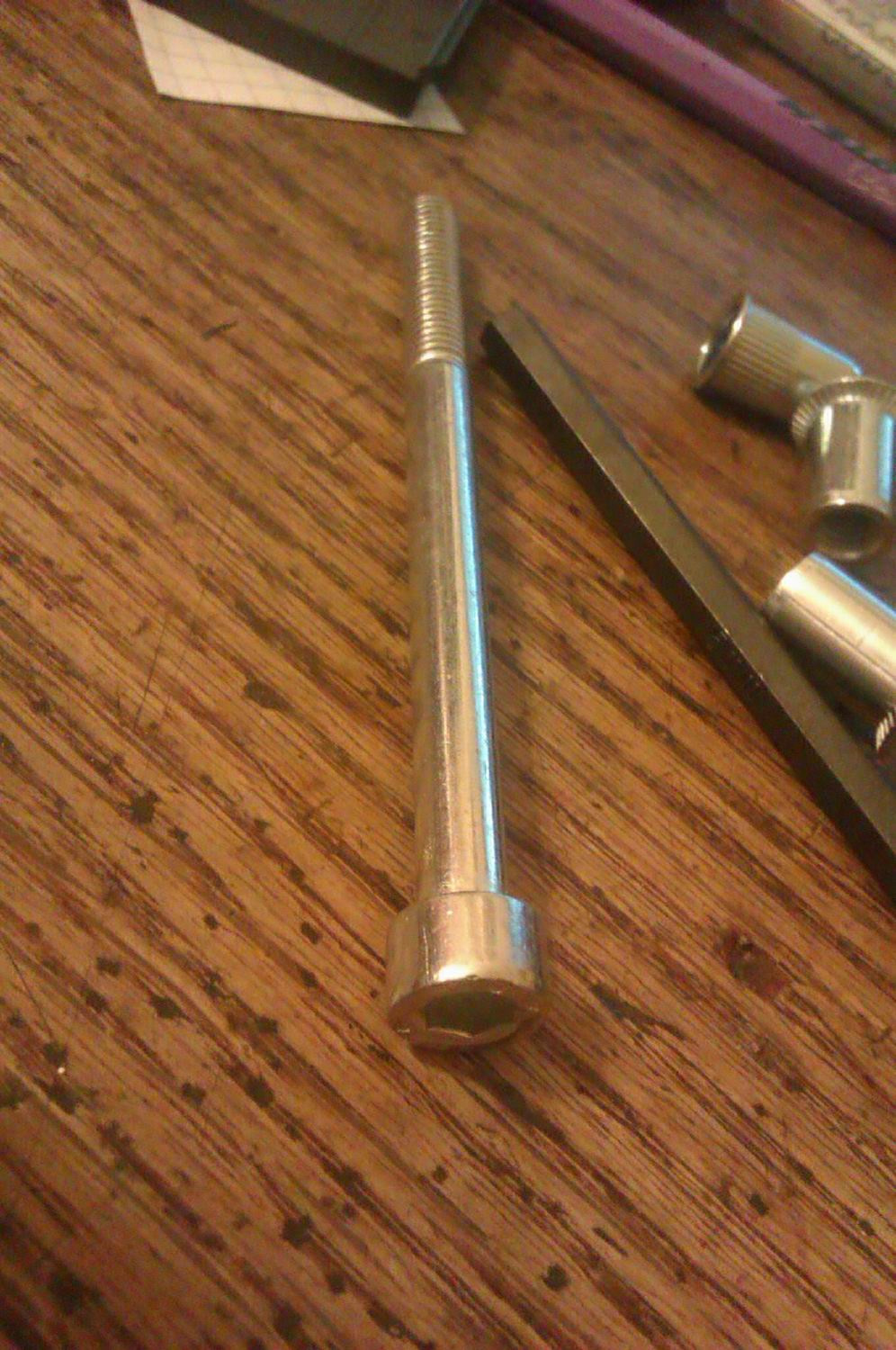 В качестве тянущего болта я сначала примерял обычный с шестигранной головкой, но его надо подтачивать, и я приобрел болт с внутренним шестигранником класса прочности 8,8 (больше не было) длиной 80мм. (20р)