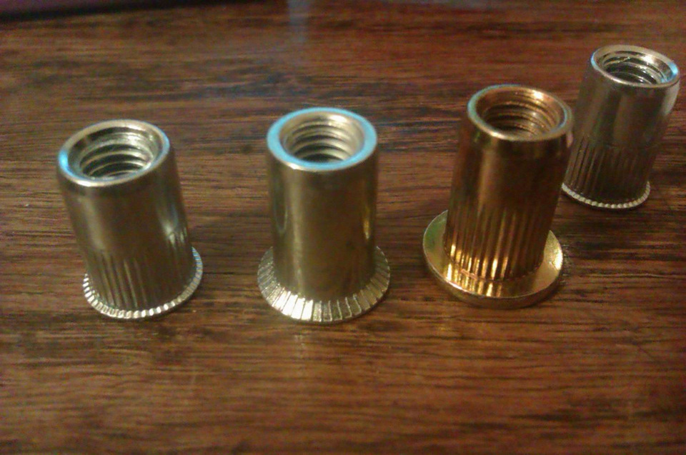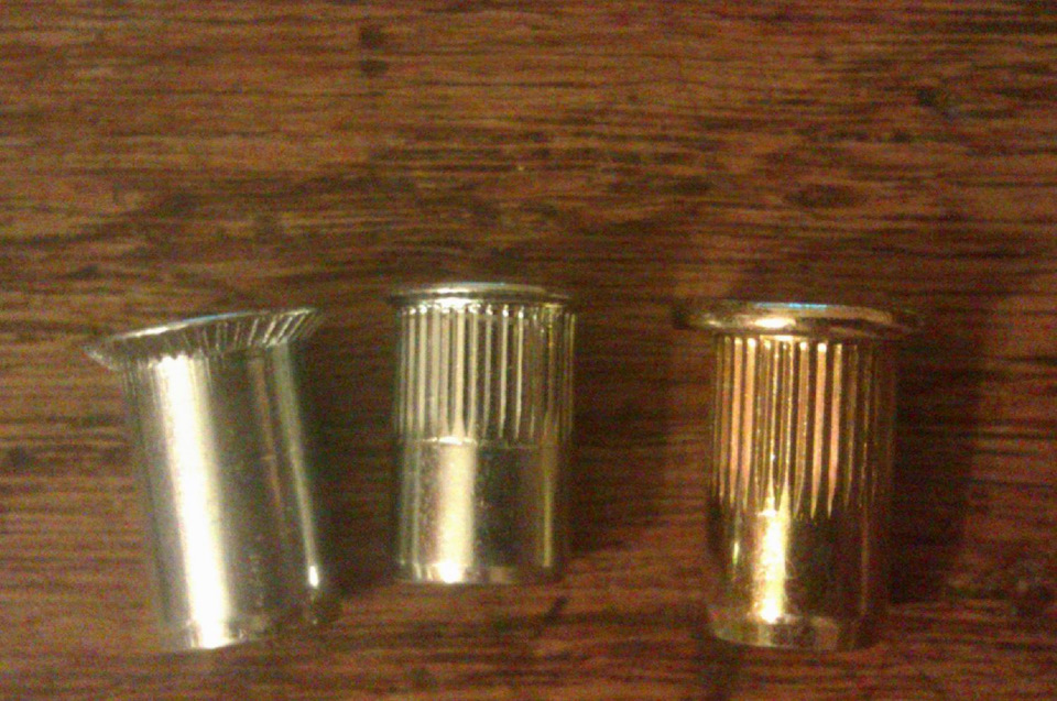 Итак, имеем необходимость установить в некую тонкую металлическую(хотя и не обязательно) панель гайку. А доступ есть только с лицевой стороны. Для этого есть резьбовые тяговые заклепки. После их расклепывания остается аккуратно оформленное резьбовое отверстие. Диаметры есть от 3 до 10мм точно. Материалы: алюминий, сталь никелированная, сталь кадмированная, есть медные, может еще какие то.
