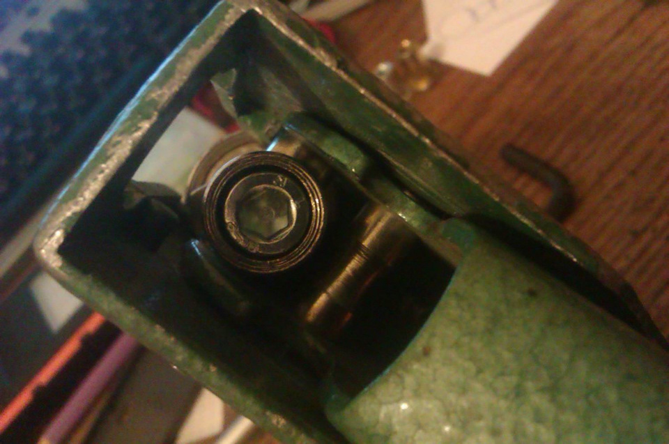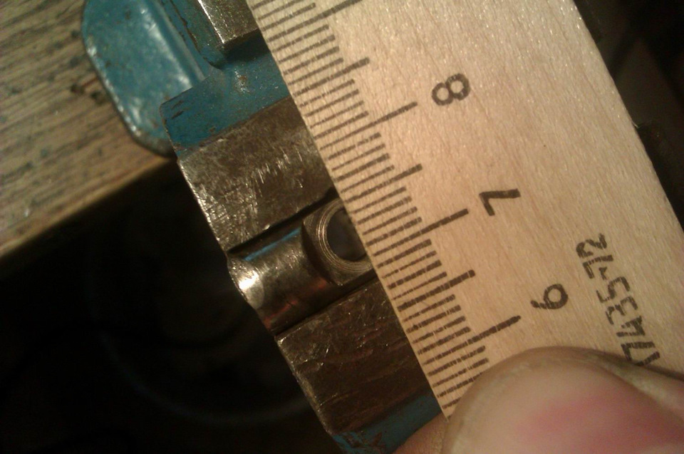Поперечная ось после поворота отверткой за шлиц вытаскивается легко руками. В ней отверстие около 5 мм.