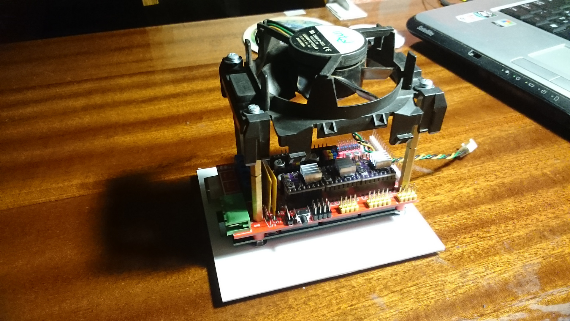 4. На всю эту конструкцию надо поставить вентилятор, чтобы охлаждать драйвера. Говорят и так все работает, но когда отключится мотор во время печати, не очень хорошо.