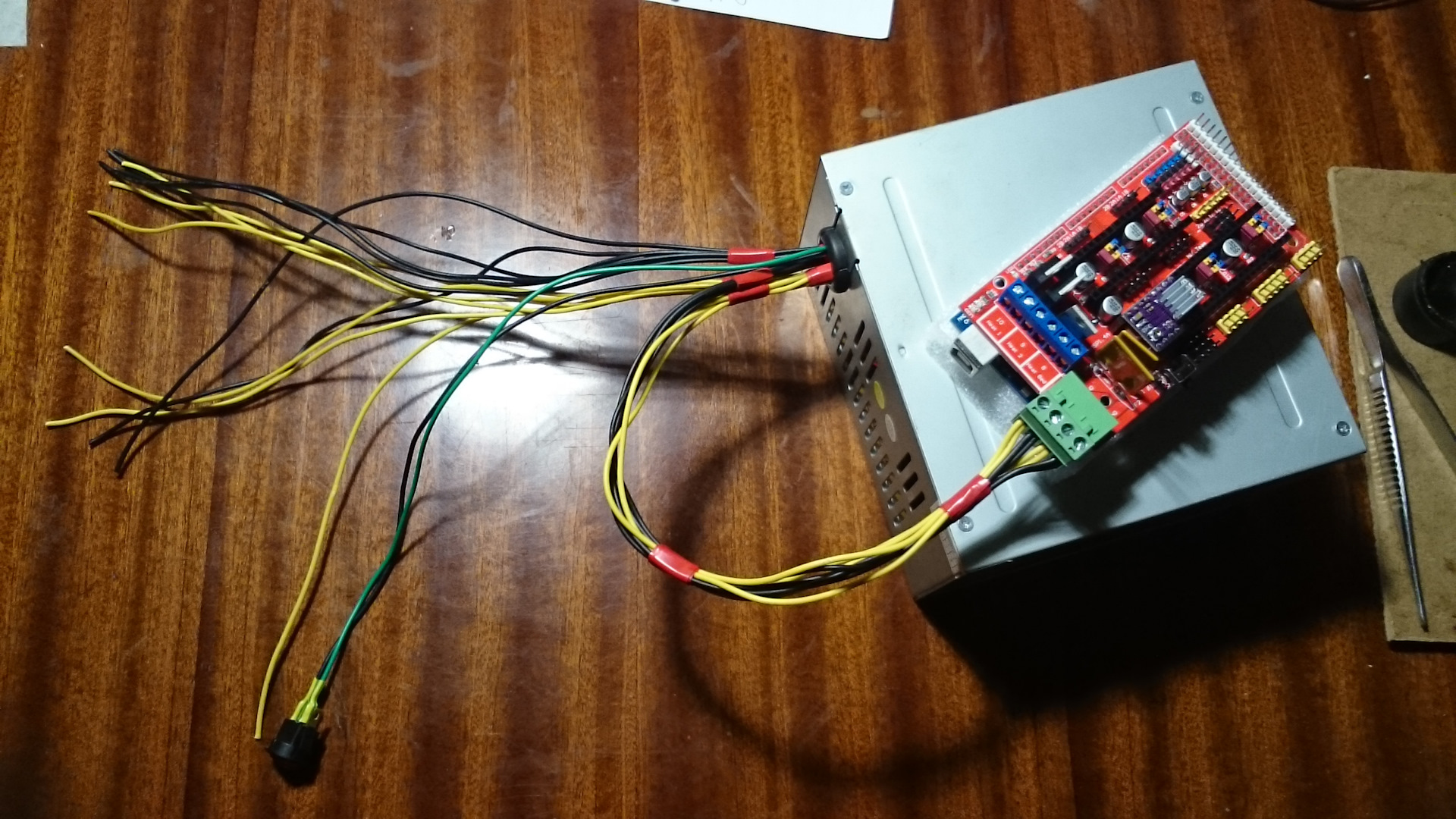 Еще раз: 1. Ардуино с проводом ЮСБ. 2. Рампс 1.4 с пятью драйверами и радиаторами. 3 Стол с термистором, или термистор отдельно на 100 кОм. 4. Хотенд с нагревателем с вентилятором и термистором + тефлоновая трубка. 5. Боуден. 6 Пять моторов. 7. ЛСД дисплей для РАМПС 1.4 с дополнительной платкой и двумя кабелями. 8. Блок питания на 16 ампер. 9. Автомобильное реле на 40 ампер 12 вольт. 10. Комплект проводов, я не покупал, не знаю. 11. Концевые выключатели механические или оптические на платках с проводом.