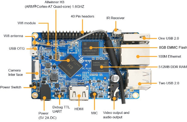 Первое, что мне попалось на глаза — Orange Pi. Вначале купил Orange Pi Pc (долларов 30). Потом увидел чуть (на 5 баксов) дороже Orange Pi PC Plus с Вифи и EMMC и поменял на эту.