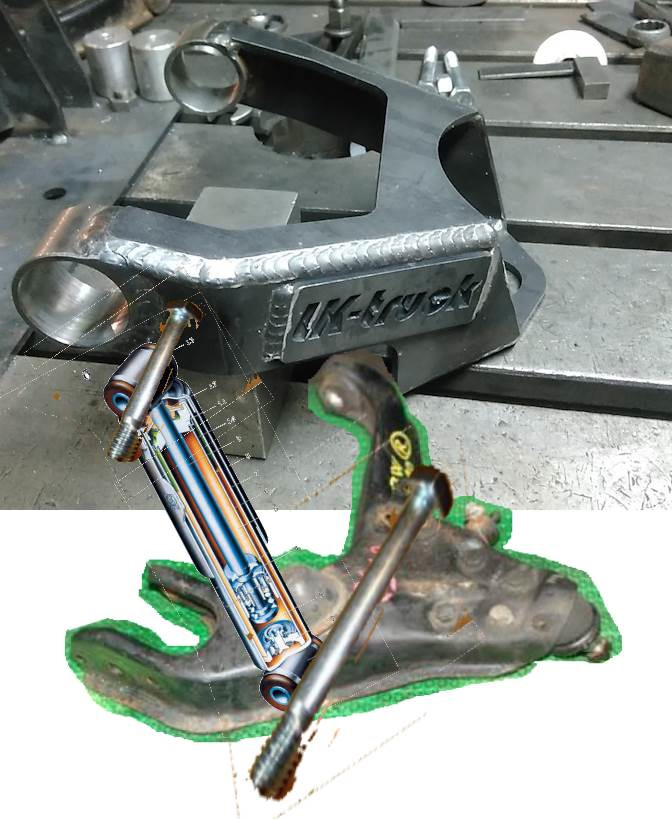 Только верхнее крепление не к раме варить, ослабляя её, а к оси рычага. Ведь сейчас очень трепетно к раме относятся, все боятся распилов. Поэтому всякие сварки по раме стоит избегать. А остают штатные отверстия рычагов и крепления аммортов. Если ось крепления амморта в нижнем рычаге удлинить, а близко к оси верхнего сделать проушину.