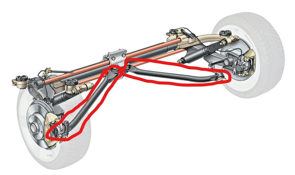 И ещё. Так как плоскость колеса лежит в стороне от подшипника рычага-то, по правильному должно быть 2 подшипника с каждой стороны и значительное плечо между ними. А этого нет. Поэтому рычаг скручивается а подшипник выворачивается и колёса стремятся встать "домиком". Торсионы изгибаясь, допускают такое перемещение.