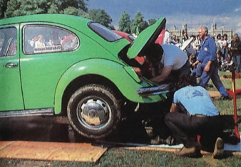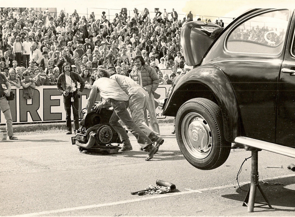Самый сложный и зрелищный пожалуй «снять/поставить мотор» на время. Был очень популярен в семидесятых, причём на разных мероприятиях правила могли разниться, где то было строго оговорено условие в плоть до гаек а где то нет. Где то мотор нужно было вытащить из под машины и оттащить от неё на 5 метров, а где то было достаточно просто уронить на землю, ну и так далее.