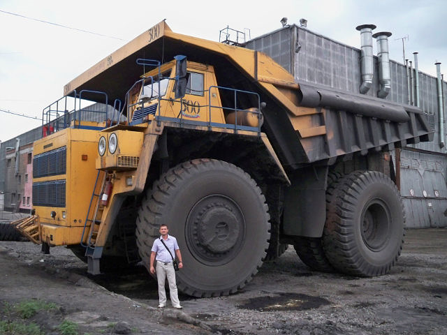 Ну я так пошутил! Полгода назад был в гостях на Бачатском разрезе! Впечатления от таких машин до сих пор одолевают! А еще рассказы о том как горят, как тормоза отказывают, как шины взрываются и т.д! Как будто бы на другую планету слетал!