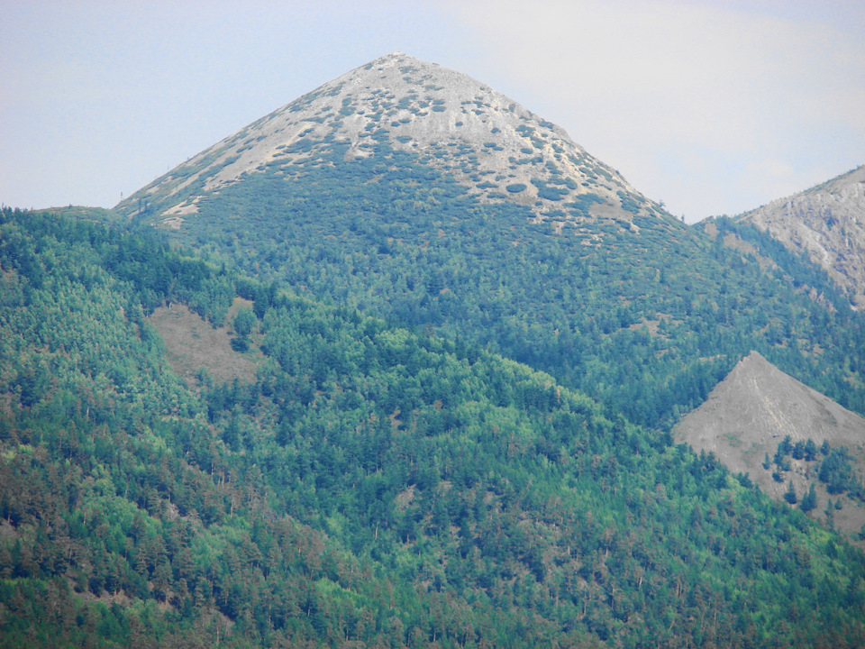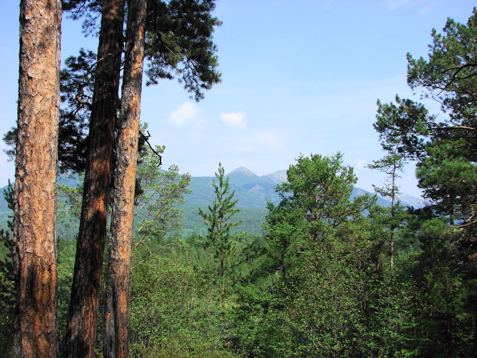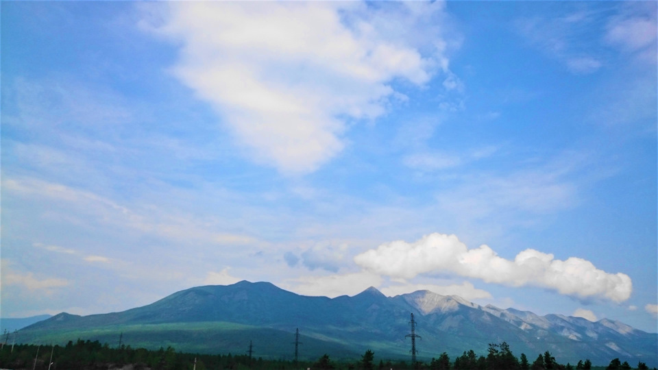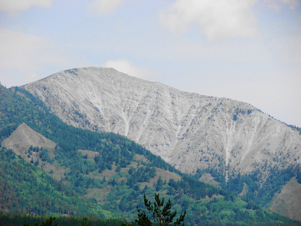 Местный парень сказал, что это отголоски Саянов.Что-то вспомнилась легенда про две горы.Та что на фото(девушка)и другая(мужчина)Каогда они вместе встретятся, то затопят своей страстью всё вокруг.