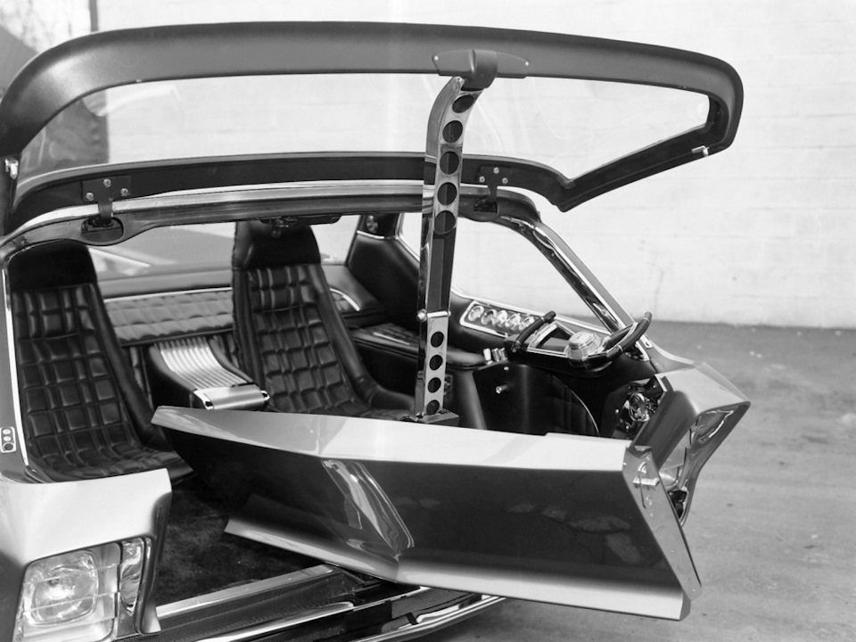 Интересность данного проекта в идее создать автомобиль без дверных проемов. Гарри считал, что они сильно портят дизайн любого автомобиля. Может быть и так, это сейчас стыки между деталями практически не заметны, а в 1964 году они были такие, что муха могла пролететь, тем не менее, как попасть в автомобиль? Именно так и появилось лобовое стекло с дверью, как багажная дверь у современных внедорожников. Собственно это она и есть, они взяли заднюю часть от Ford Station Wagon образца 1960 года и приварили ее вперед.