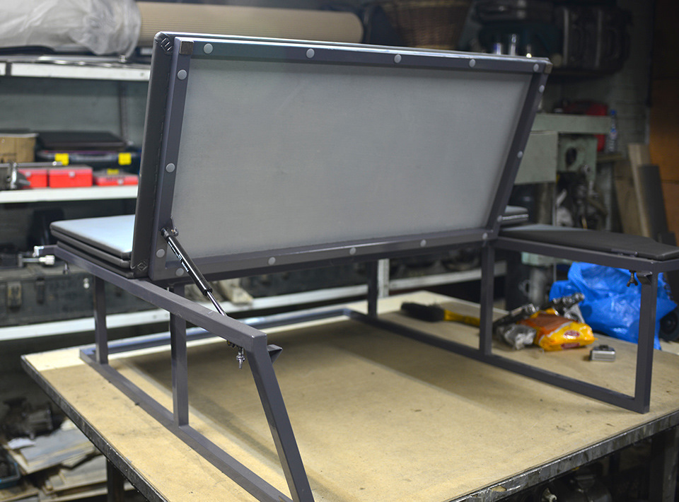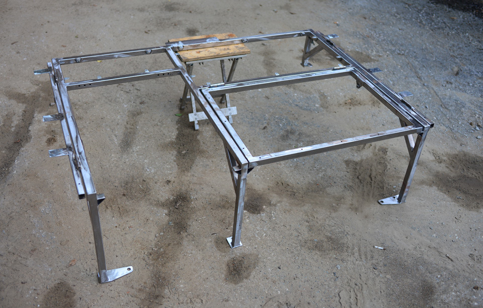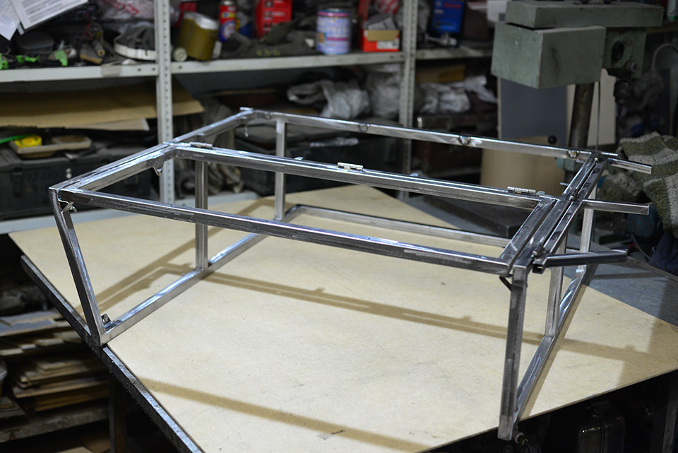 Ну раскладушка — это наименьшая из проблем, можно её вообще не делать, а просто крышки раздельные плоско сдвигать и укладывать на каркас… Но вообще конечно развернуться негде. Лучше уж в палатке :)