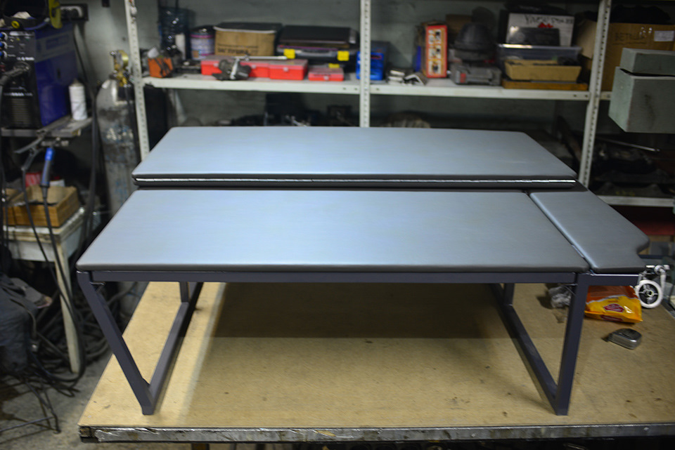 Классический пример — холодильник. Вещь полезная, но высокая. Поднимать всю конструкцию мы не будем — тогда вместо спальника получится грузовая полка в поезде. Для этой кухонной мебели мы делаем отдельную секцию со съёмной крышкой.