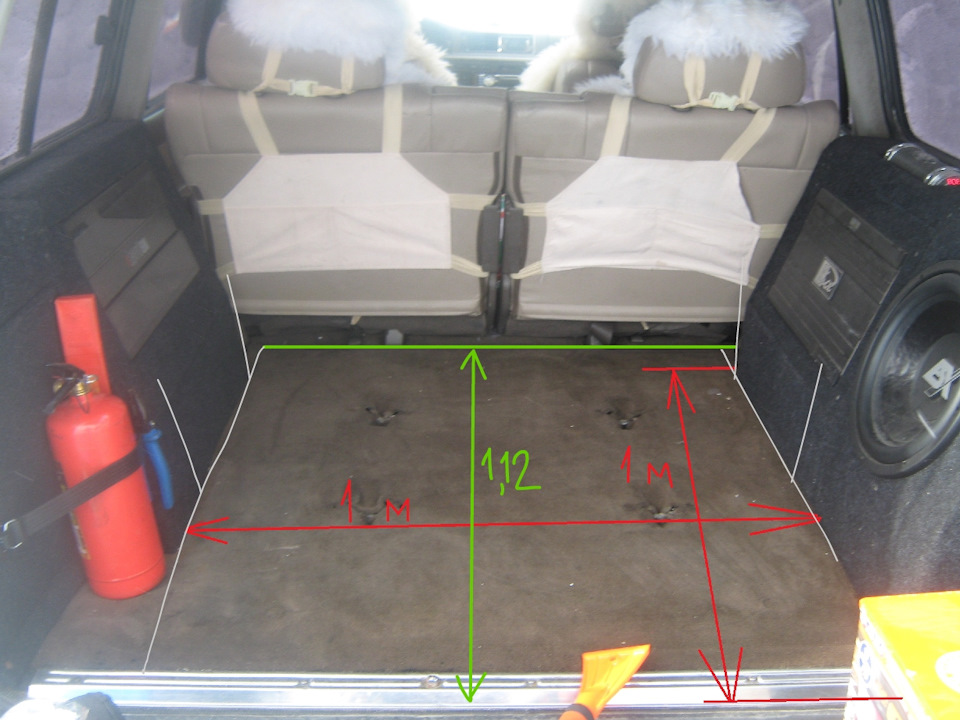 Да поторопился я.Сам виноват.Сейчас бы по другому всё распланировал.Без центральной стойки вообще.Как на ваших.И не ковролин.И главное-у вас спальная полка выдвижная.А на тех(без вариантов)-так я толком не понял, крепится к ящику липучками и просто лежит на спинках второго ряда.Мне так и не объяснили как это будет."Всех устраивает!". И на сайтовых фото нет ни одного ракурса.Ни на одну машину.Все фото "в боевом положении сна"-только сзади, через распахнутый багажник.А у меня там расстояние до передних сидух не малое!Сдвинуты сиденья потому как.Подиум… Висеть будет полка! То ли подвязывать, то ли…Видно будет, но жо.й чую-ошибся я.Похоже-придётся колхозить самому это момент…