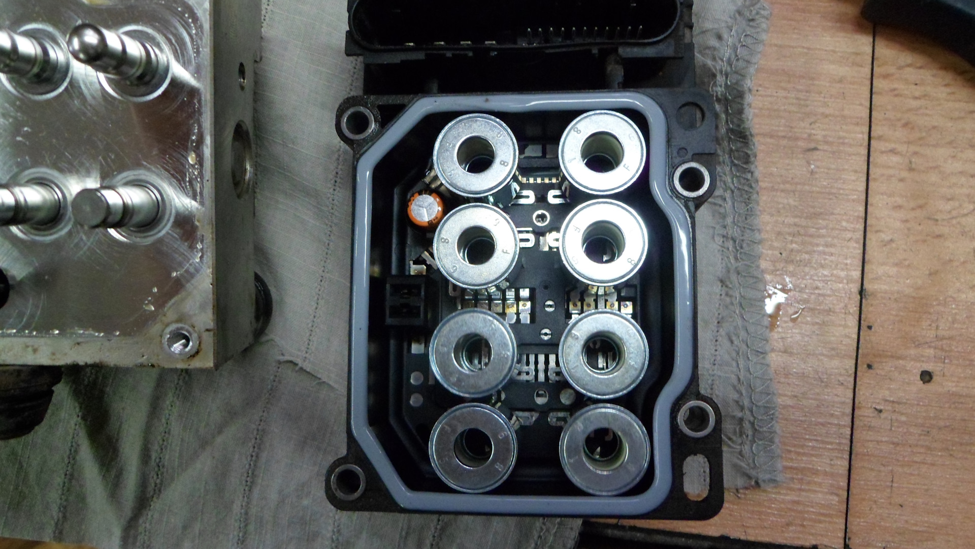 Делаем диагнозу и Езитроник выдает нам ошибку u2108( нет связи с блоком АБС) снимаю разьем звоню CAN а там 0 Ом (должно быть 120 Ом) принимаем решение снимать блок