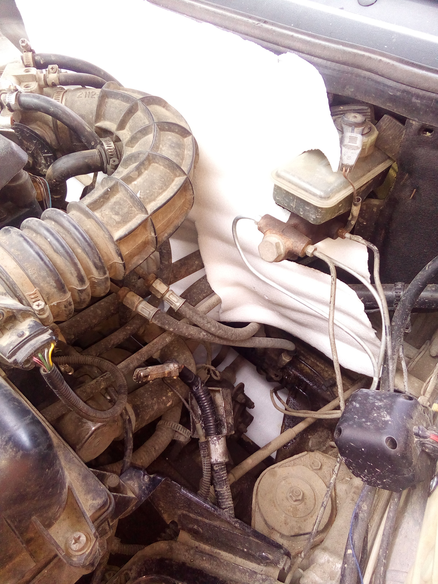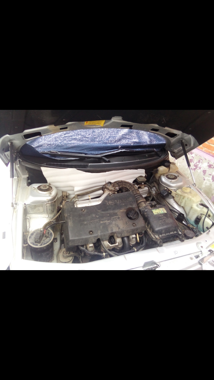 Потом пошел дальше) решил утеплить капот энергофолом)) Благо в сарае его было достаточно. Положил в два слоя его под капот, и засунул еще перед радиатором)) Стало вообще супер. Температура была от 85 до 95. Печка грела естественно очень горячо.