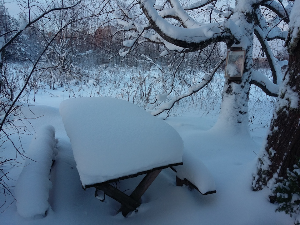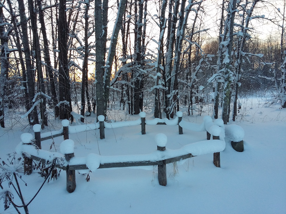 Здесь летом живет хранитель праха. Сейчас на ней замок… Зимой это место кажется малодоступным, но тем не менее, здесь иногда прокладывают дороги, с целью лесозаготовки. Несмотря на большое количество снега, мне все — таки удалось отыскать памятник, и много других интересных моментов. Благодаря завещанию, это место словно ожило. Вот избушка, за ней поленница дров и стол со скамейками, а рядом — фотография именитого уроженца этой деревни, человека с непростой судьбой, как и судьба его малой Родины, и спустя десятки лет, он снова здесь, но теперь уже навсегда… .