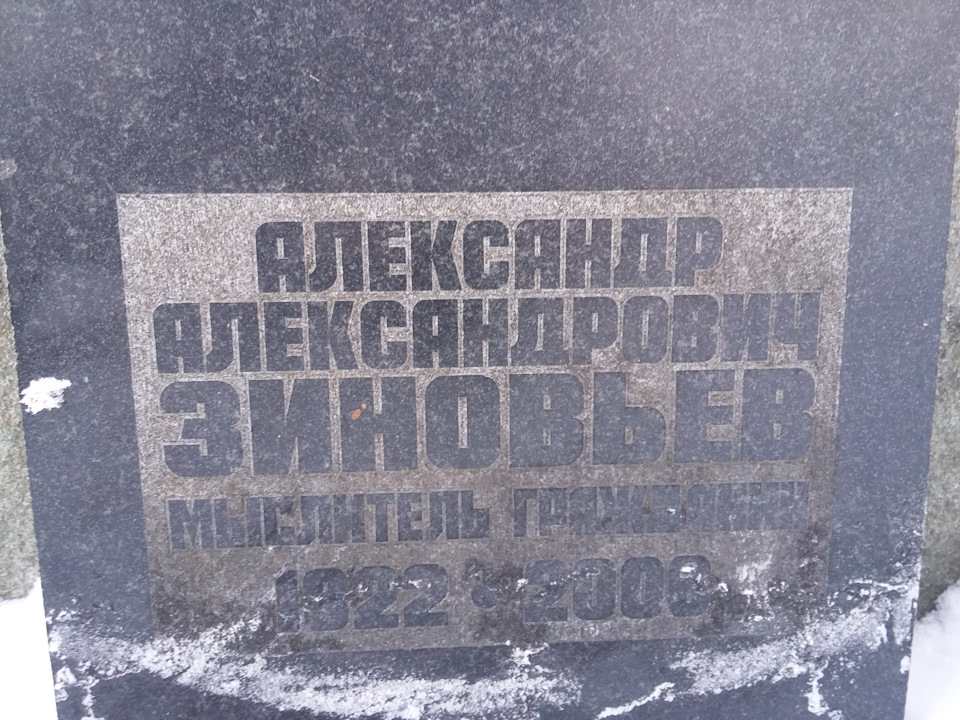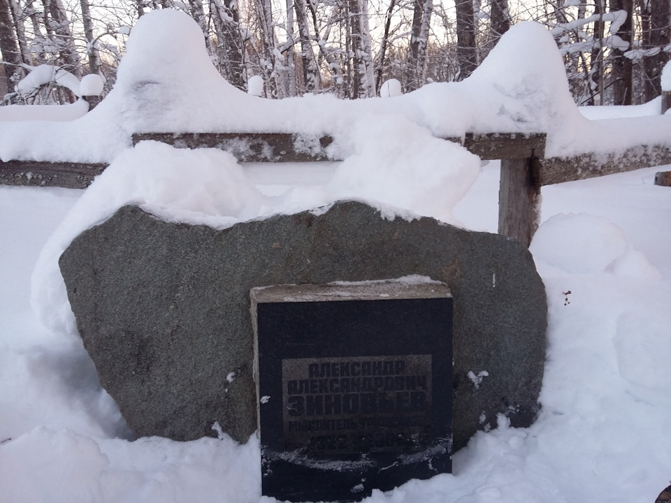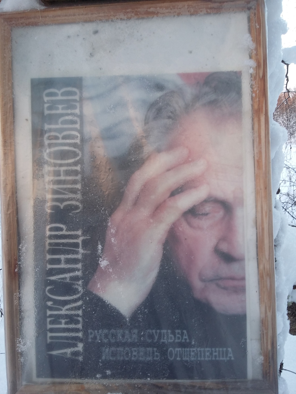 . В деревню Пахтино мы приехали на восходе солнца, за рутиной работы многое было упущено, но на исходе короткого зимнего дня я все — таки успел выкроить немного времени, чтобы посетить родину известного публициста, социолога и философа — Александра Александровича Зиновьева. Некогда это была маленькая неприметная деревушка, в которой насчитывалось не более шести домов. Но время неумолимо, и она, как многие другие, исчезла с лица земли., но не из памяти А.А. Зиновьева. Он завещал здесь развеять свой прах после смерти, и это завещание было выполнено. В небольшом поле, находящемся под натиском леса, где некогда была деревушка, вырос небольшой домик.