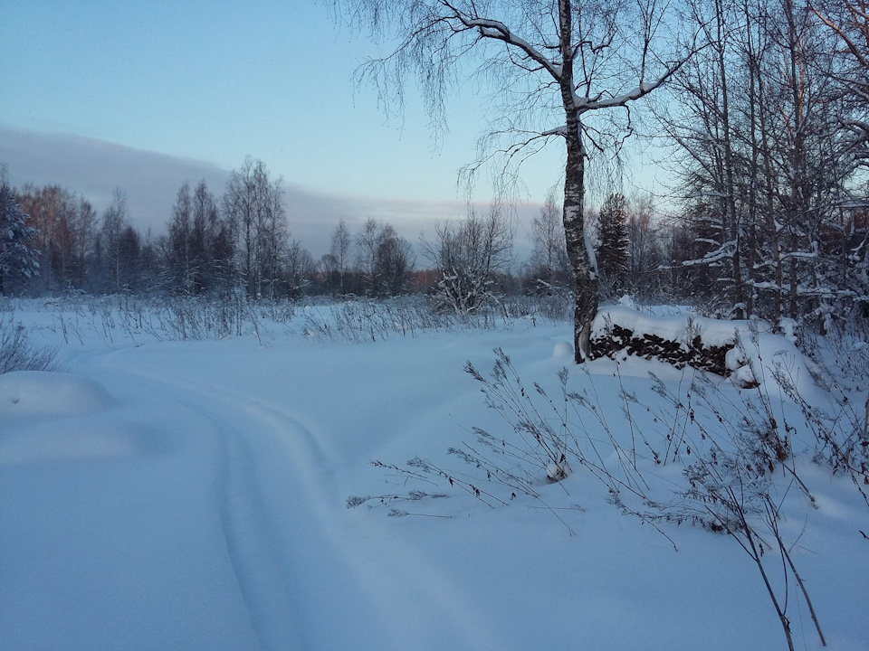 Сейчас там колея от нашего рабочего ГАЗ — 66, она была прочищена, но все занесло, пришлось наминать заново. Церковь Троицы хочется посетить, но все никак не могу выкроить время, если доберусь, упомяну и о ней, конечно заросла она сильно, обидно за наши брошенные церкви.