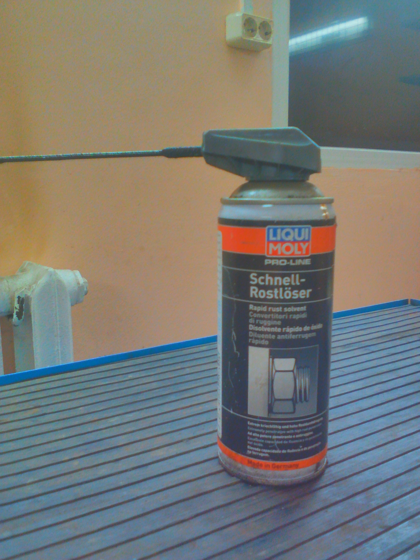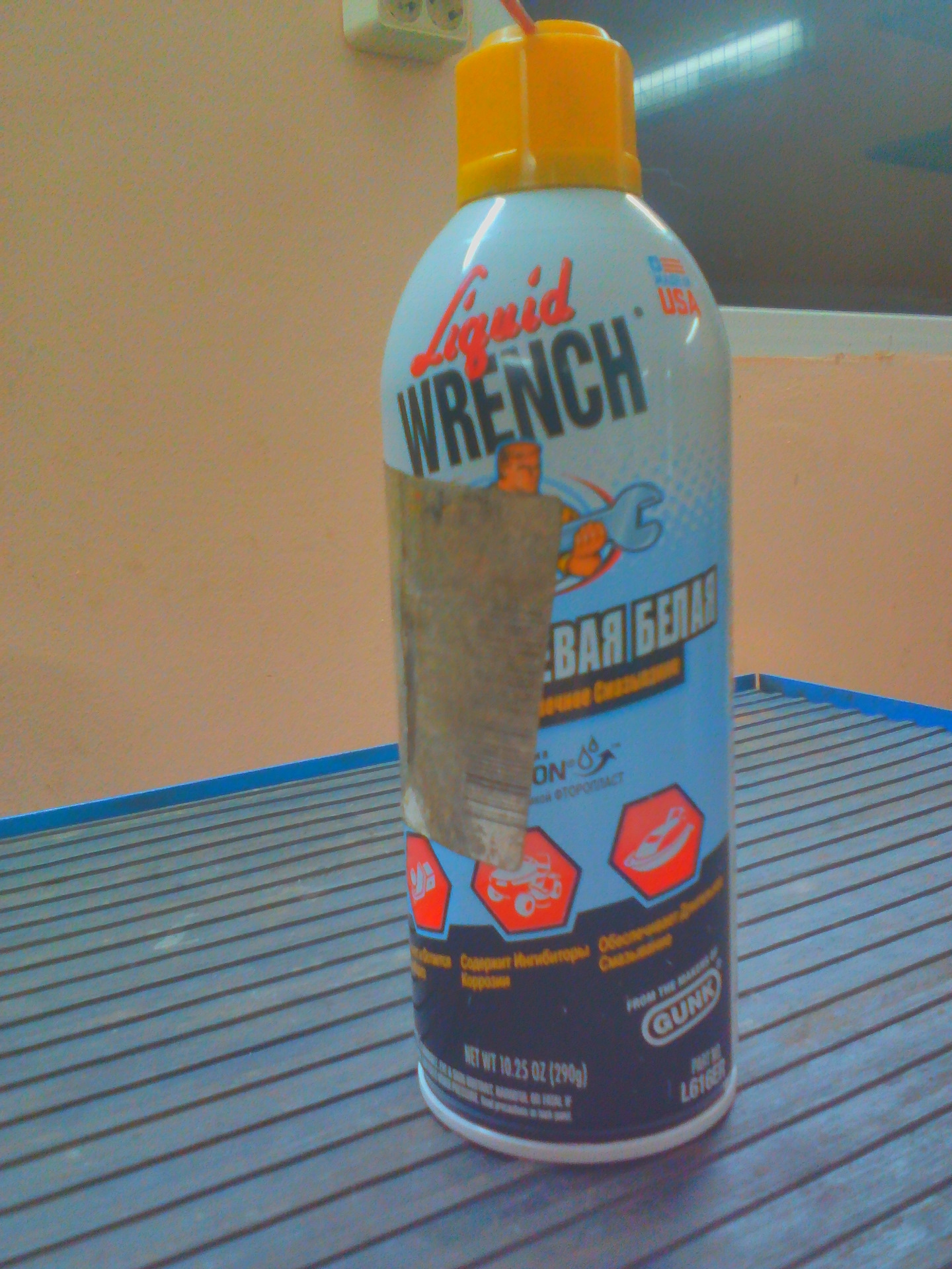 Купили её тоже по ошибке. Вообще на балончике написано преобразователь ржавчины и что он, якобы, действует как жидкий ключ. Я сначала подумал, что это очередная немецкая лажа и забросил этот баллон на полку. А потом решил все-таки попробовать. Оказалось, что очень неплохая вещь, реально проникает в резьбу даже под слоем ржавчины, я теперь только ей и пользуюсь. Только запах у неё подозрительный, ну и в глаза не дай бог она попадет.