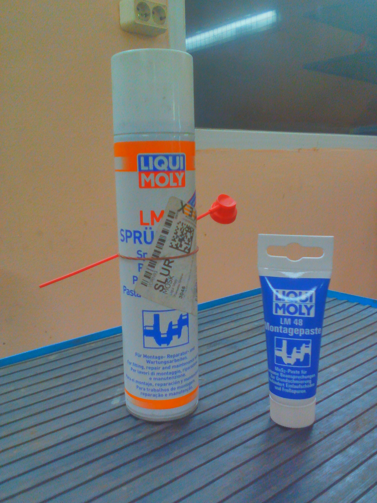 На этой фотке белая литиевая смазка, купил её для консервации болтов, например подвески, да и вообще любого крепежа, который может заржаветь. Конкретно этот пузырек купил из за его низкой цены, что то около 180 рублей.