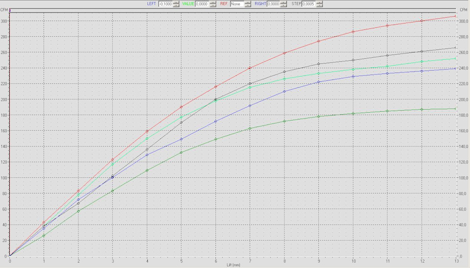 Привет, замер проводится при давлении 28 inH2O. Имитатор цилиндра диаметром 95 мм. Csa не измеряем. Каналы обрабатываются только в местах, влияющих на увеличение наполнения, то есть сечения не максимально большие. При продувке гбц, на впуске вместо пластелина ставится небольшой мегафон, для разных гбц свой, для точности повторения измерений. Выпуск продувается при избыточном давлении 28 inH2O.
