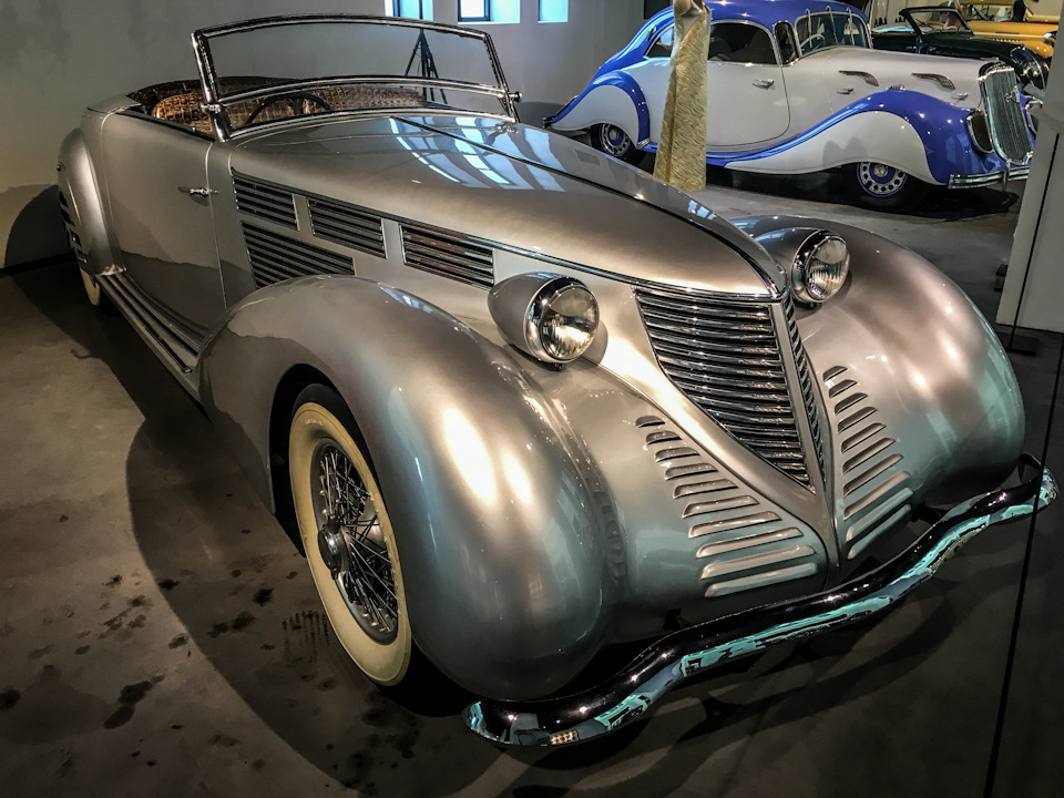 Открытый Cord 812 Phaeton 1937 года щеголял передовыми техническими решениями. Он стал первым серийным автомобилем в США с передним приводом и независимой подвеской передних колес. Кроме того, впервые в истории автопрома на машину установили спрятанную фронтальную оптику