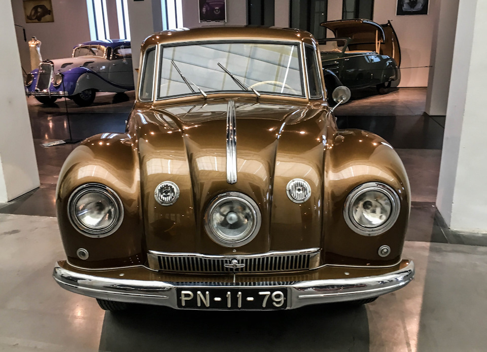 Чехословацкая Tatra 87, выпущенная в 1947 году. Автомобиль представительского класса выделялся своей неординарной конструкцией: рама хребтового типа, двигатель V8 воздушного охлаждения, расположенный сзади, полностью независимая подвеска всех колес, кузов аэродинамической формы