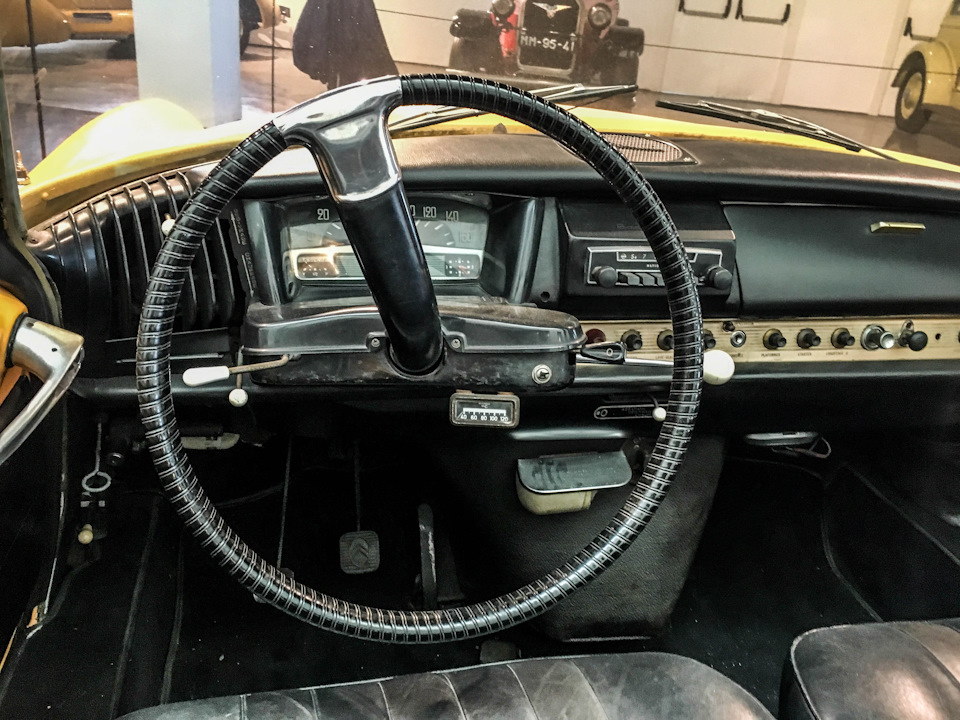 Оформление салона Citroen DS — прекрасный образец французского шарма и лаконичного стиля. Односпицевый руль уже давно стал визитной карточкой марки. На фото — машина 1961 года выпуска