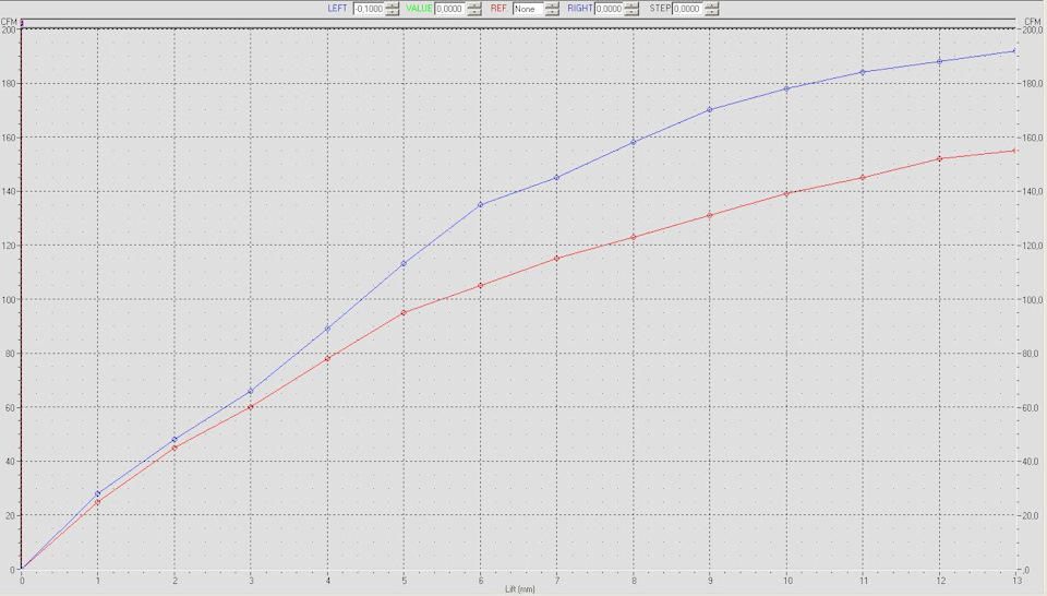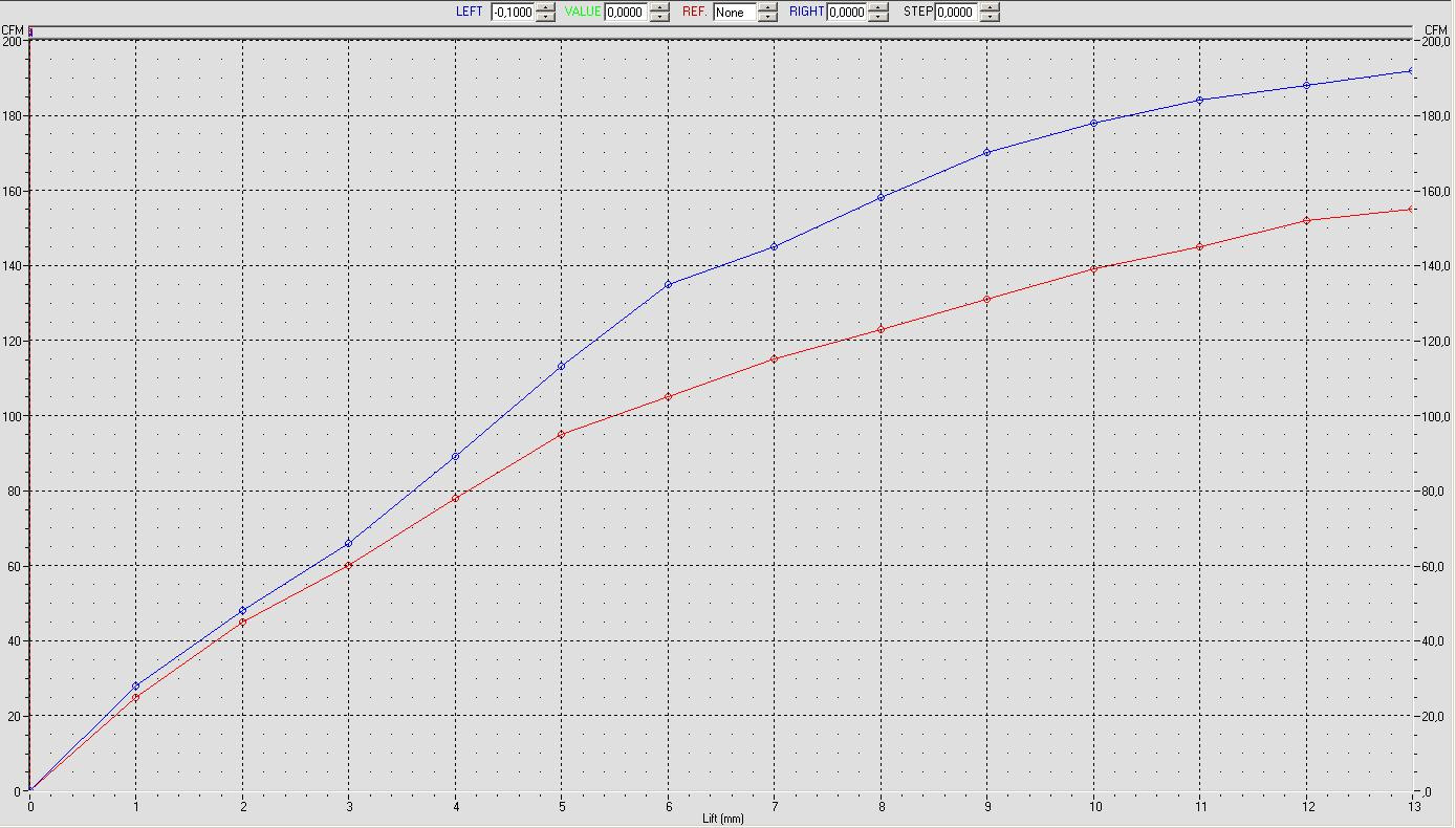 Синий график- впуск, канал доработан неким умельцем, размер клапана — 40,4 мм;