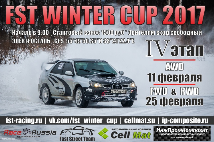 Приглашаем на четвёртый этап Зимнего Кубка "FST Winter Cup 2017", который пройдёт 11 февраля и 25 февраля 2017 г. на автодроме СТК "Азимут" в г. Электросталь.