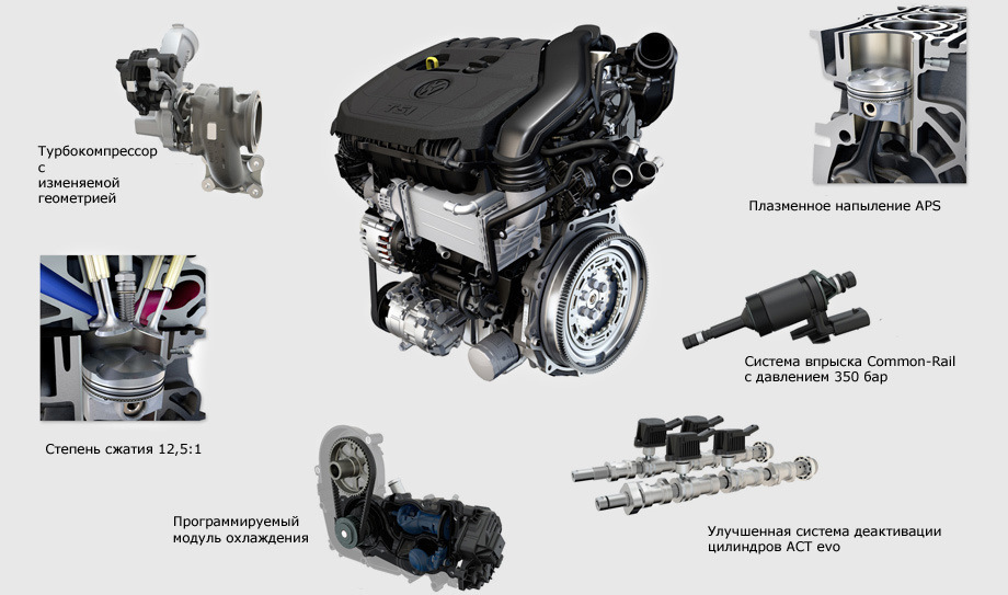 Изменения в этом двигателе позволили поднять КПД на 10% по сравнению с известным мотором 1.4 TSI (на 125 л.с.), уверяет разработчик.
